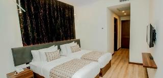 客房总数 * 100,楼层数(主楼) * 6,双床间 * 58,双人间 * 26,三人间 * 4,行政房 * 4,家庭房 * 4,无障碍房型 * 4,隔壁拼房 *