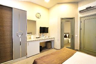客房总数 * 35,楼层数(主楼) * 4,楼层数(辅楼) * 4,双床间 * 3,双人间 * 20,小型套房 * 5,套房 * 3,三人间 * 1,家庭房 * 2
