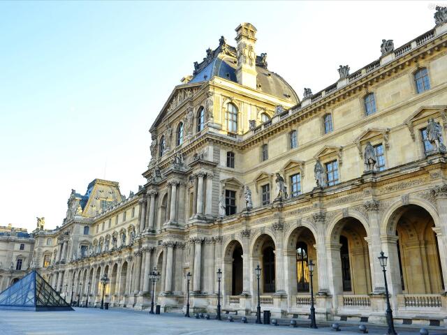 (卢浮魅影) 在花都巴黎,由华人设计师贝聿铭设计的玻璃金字塔进入“卢浮宫”璀璨夺目的艺术世界,欣赏**的“宫中三宝”:“爱神维纳斯”、“胜利女神”和“蒙娜丽莎”。