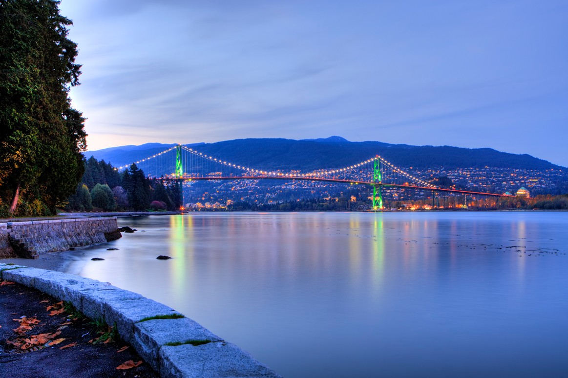 随着夜幕降临,沉浸在史丹利公园的宁静氛围中