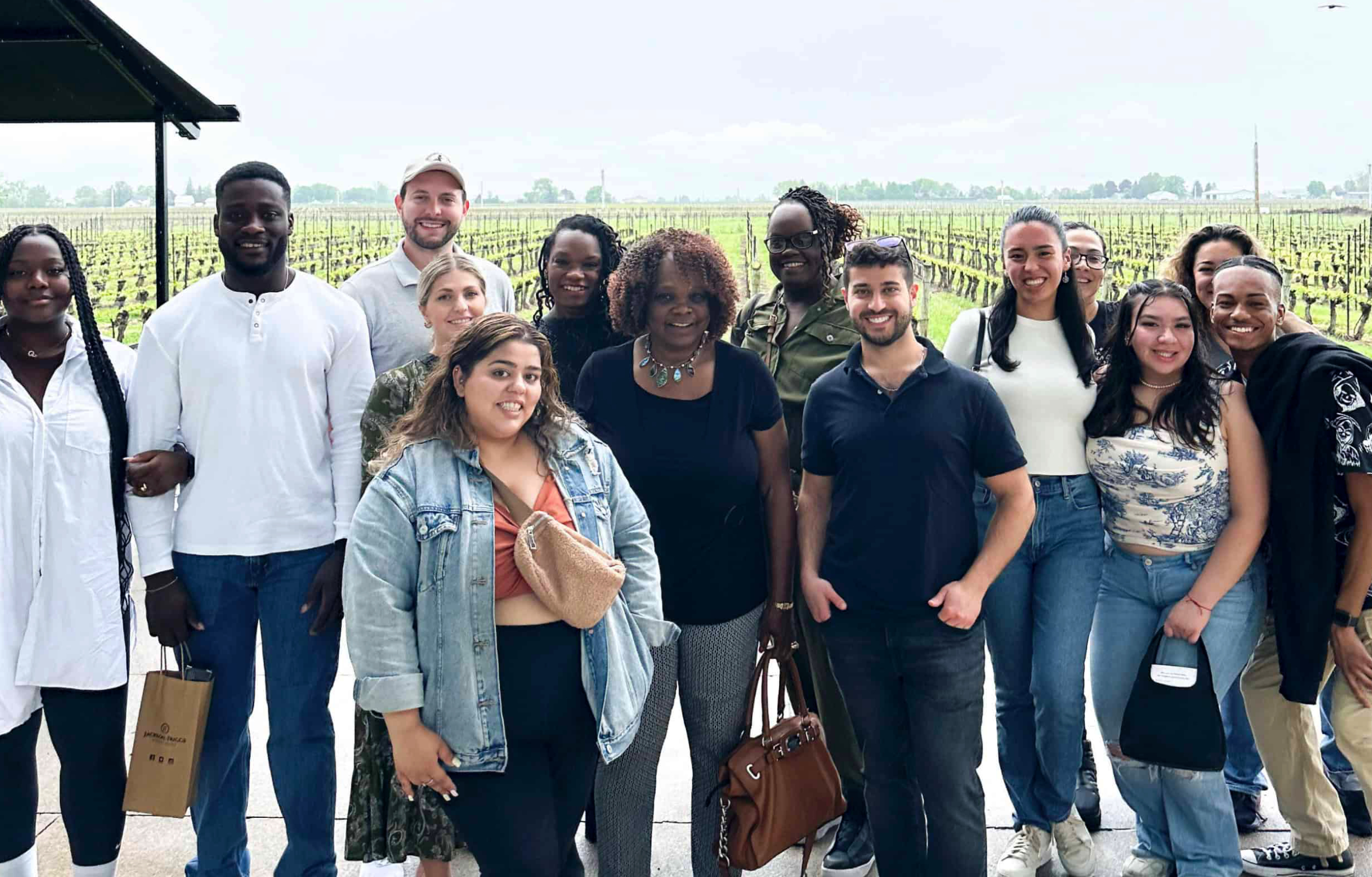这是我们的旅行团在酒庄酒窖拍摄的其中一张合影!