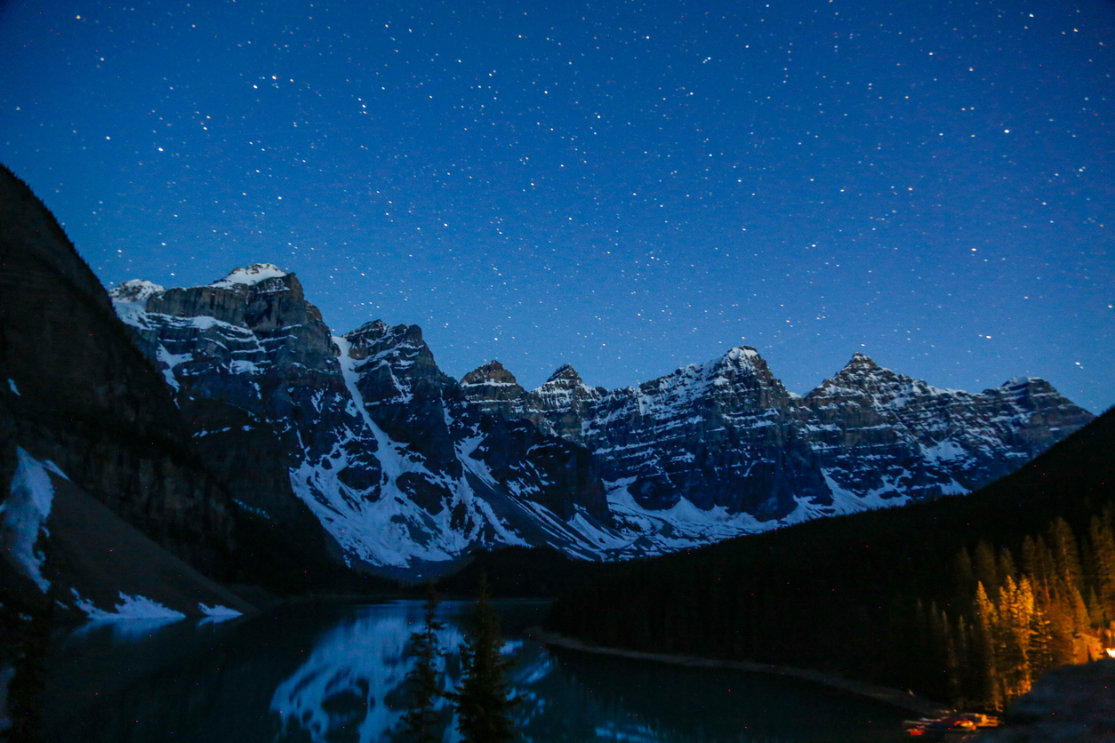 参加我们的梦莲湖日落和观星之旅,远离人群,走进野外,享受班夫国家公园真正神奇的夜间体验。这次冒险从沿着弓河谷公园大道(Bow Valley Parkway)风景优美的车道开始,这是一条主要的野生动物走廊,我们可能会看到麋鹿、鹿,甚至在傍晚较凉爽的时候出现的熊。沿途,我们将在莫兰特曲线 (Morant’s Curve) 停留,这是一处标志性的摄影地点,蜿蜒的铁路与高耸的山峰在此交汇,是捕捉日落前金色光芒的绝佳机会。