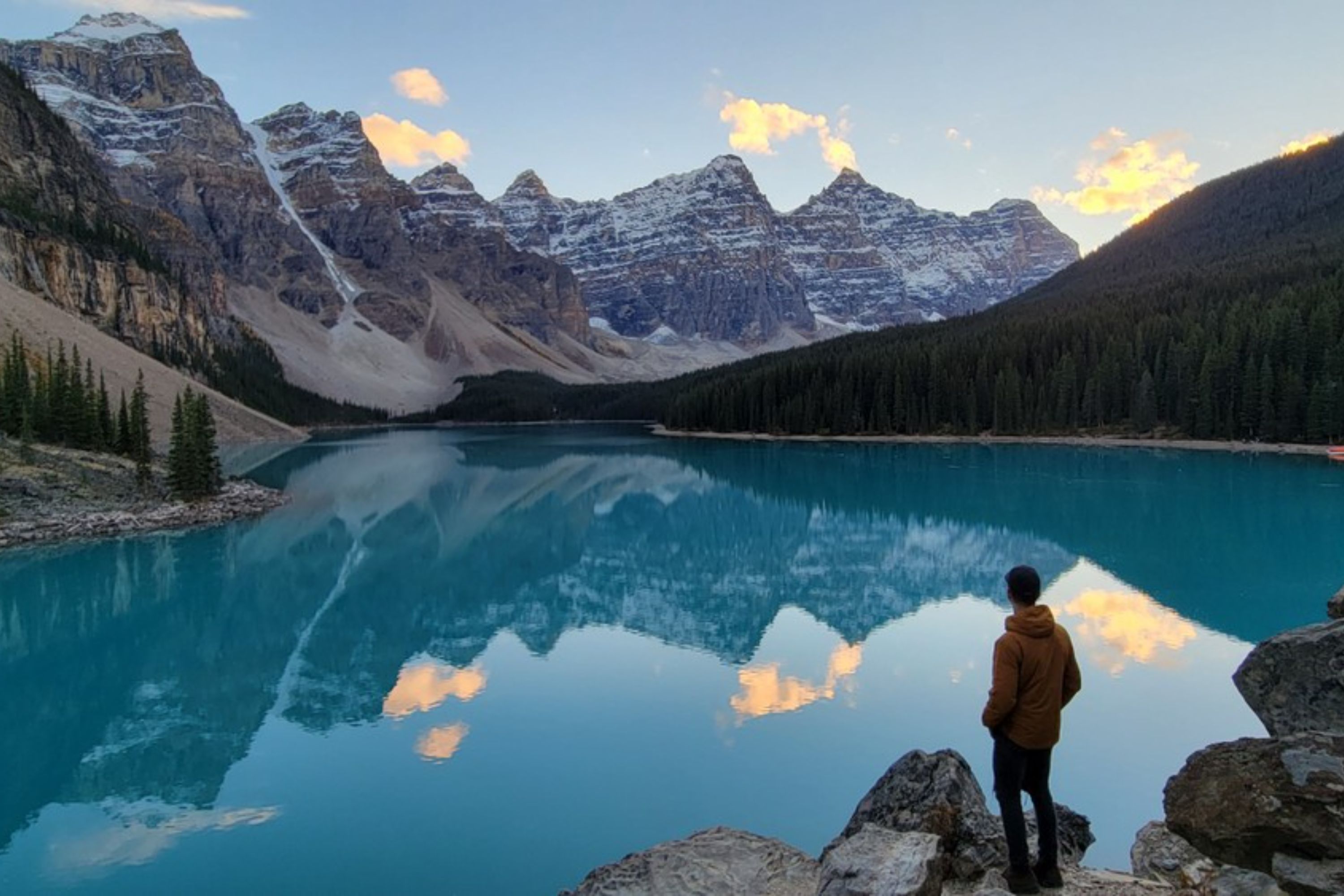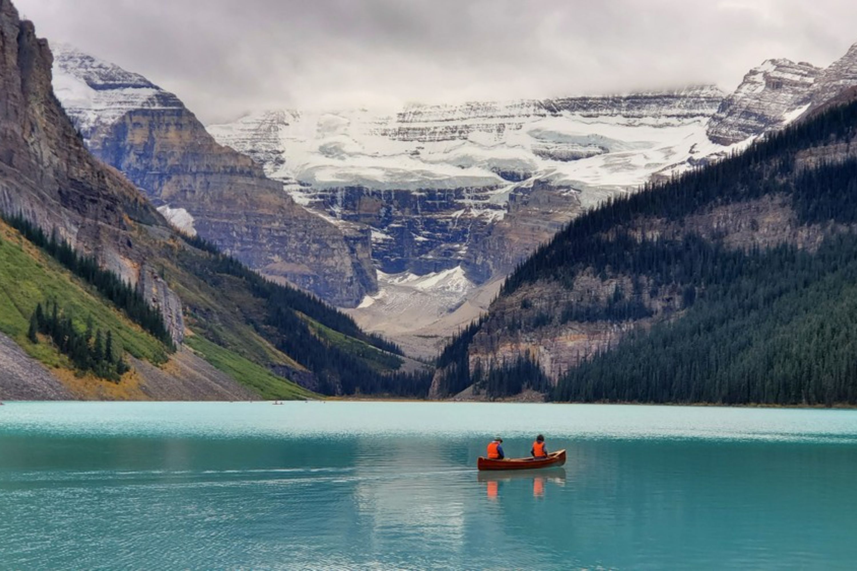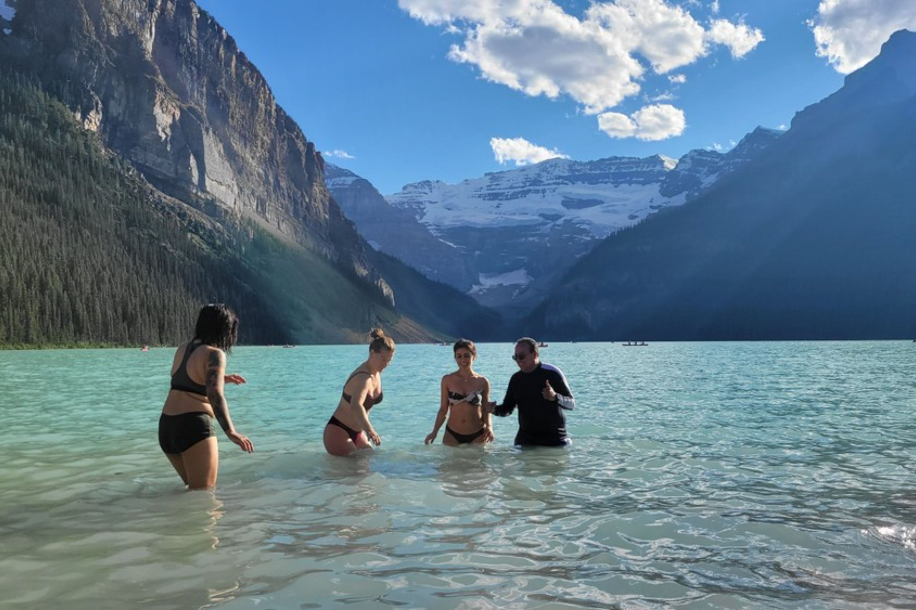 在班夫国家公园水晶般清澈的湖泊中畅游,周围环绕着令人惊叹的风景