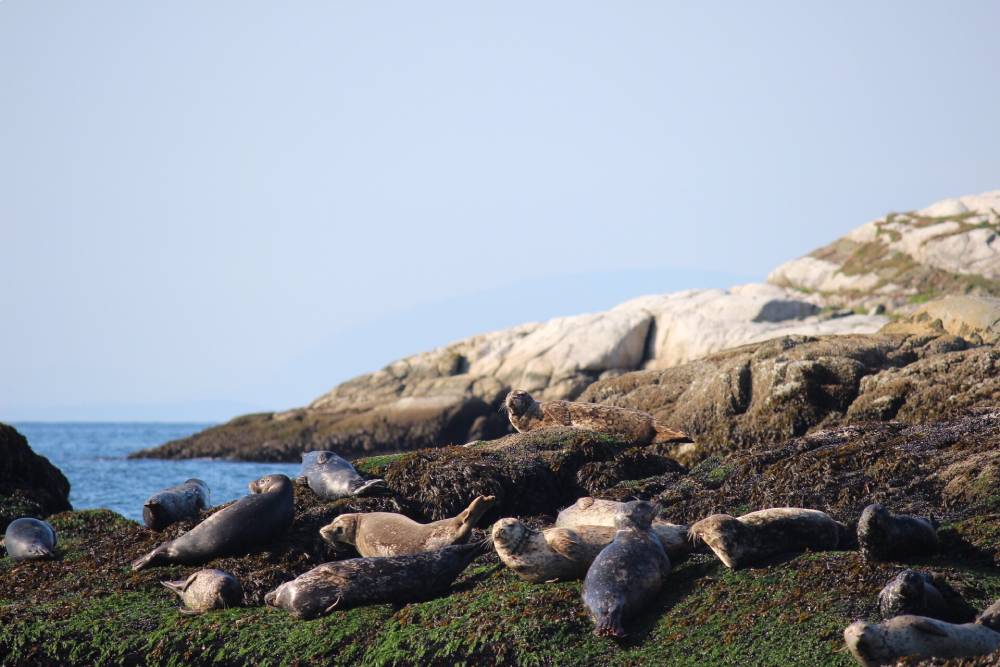 发现海狮在岩石上休息,为温哥华海岸线增添了野生动物的魅力