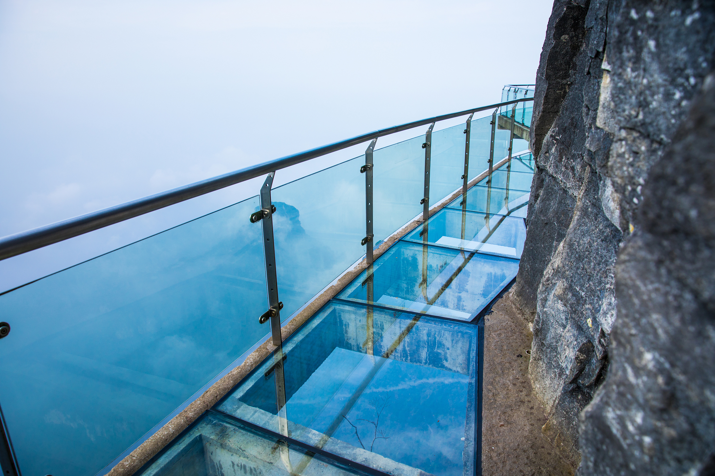 这条看着就让人腿软的玻璃桥给人带来的刺激震撼感可与举世闻名的美国大峡谷玻璃走廊“天空之路”媲美。