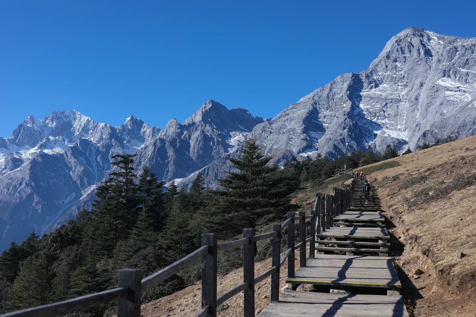 玉龙雪山:云南丽江的璀璨明珠,集雄伟雪山、幽蓝湖泊与原始森林于一体。乘坐缆车直上冰川公园,近距离感受雪山震撼;漫步蓝月谷,沉醉于湖水碧蓝之美。