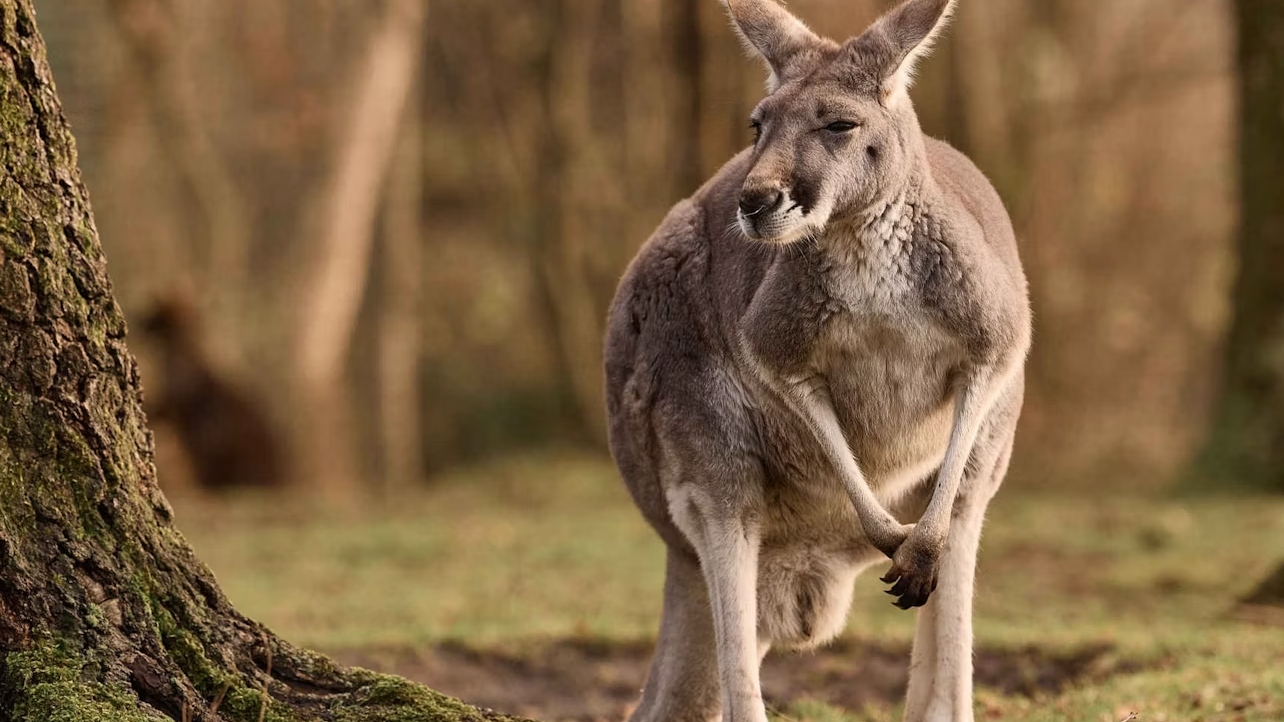 在吕伐登水族馆 (AquaZoo Leeuwarden) 宽敞的步入式围栏中,观赏袋鼠自由跳跃的场景