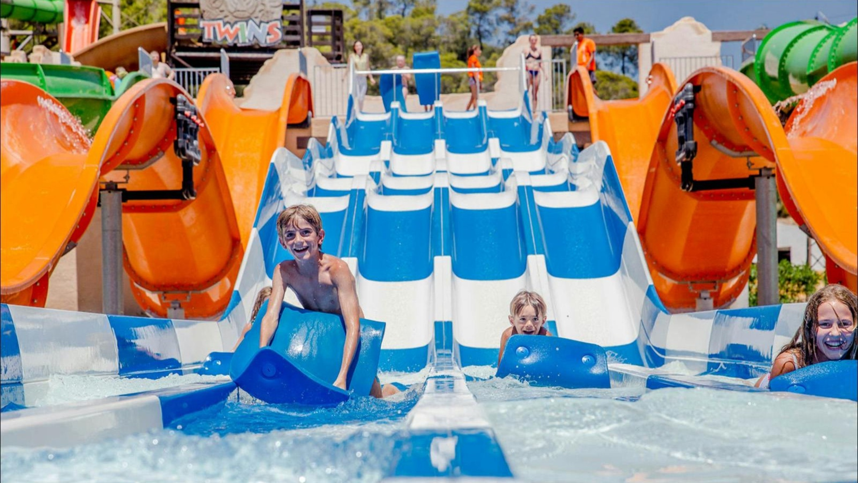 在激动人心的水上景点中滑行、嬉戏