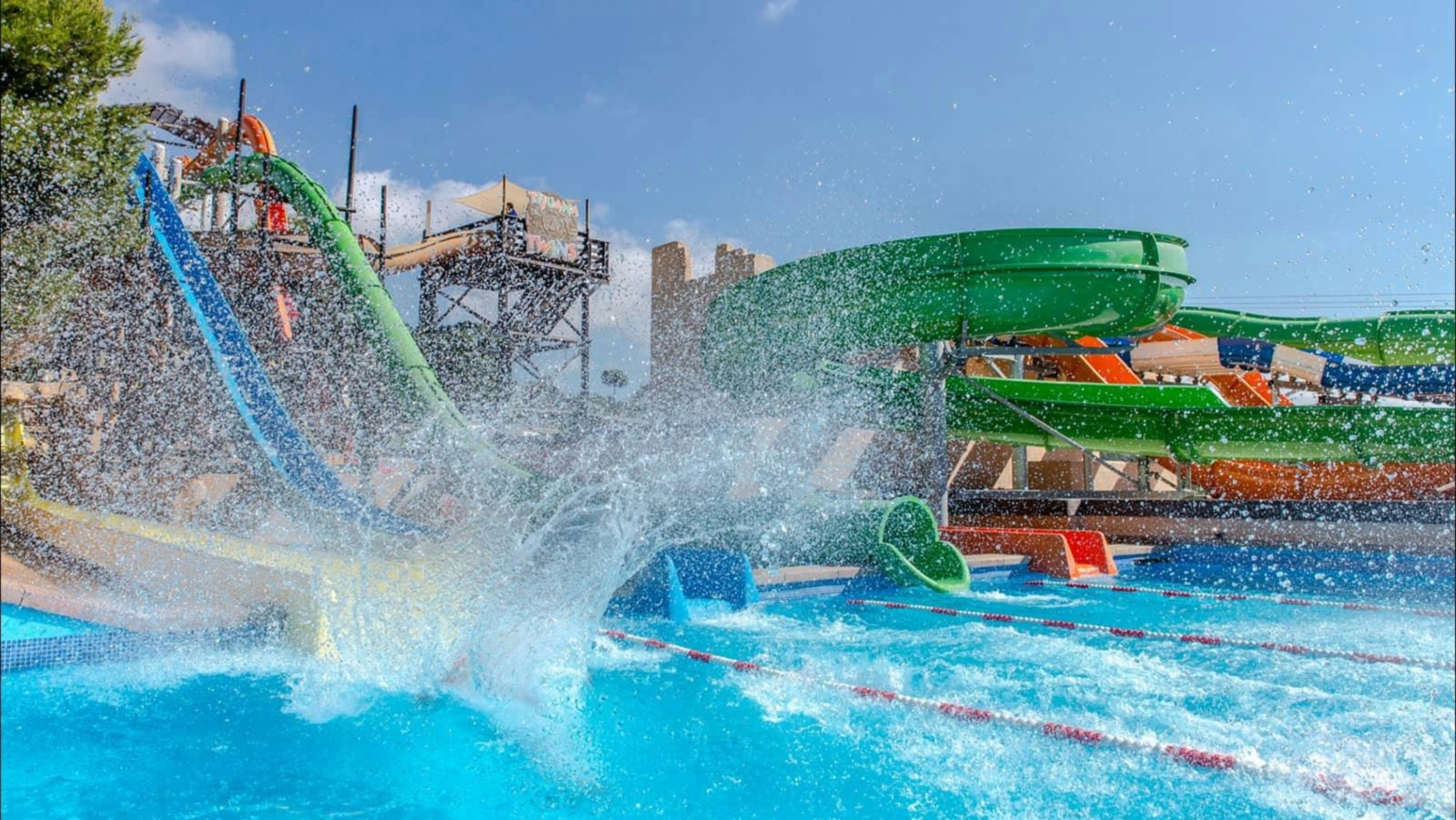 在马加鲁夫西部水上乐园体验狂野西部的冒险,牛仔与水滑梯在这里相遇,享受充满水花四溅的乐趣!这个适合全家出游的景点拥有16条惊险刺激的水滑梯、两个大型泳池、漂流河、造浪机以及专门的儿童游乐区。无论您是想体验刺激的水上项目,还是想在阳光下悠闲地漂浮,这里都能满足各个年龄段和各种刺激程度的游客。西部主题的布景为您的水上乐园体验增添了独特的色彩,让您不再只是游泳,而是一次激动人心的体验!非常适合家庭、朋友以及任何想在马略卡岛享受清凉和乐趣的人。