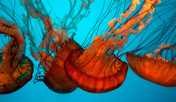 惊叹水母在发光水箱中滑行的优雅动作