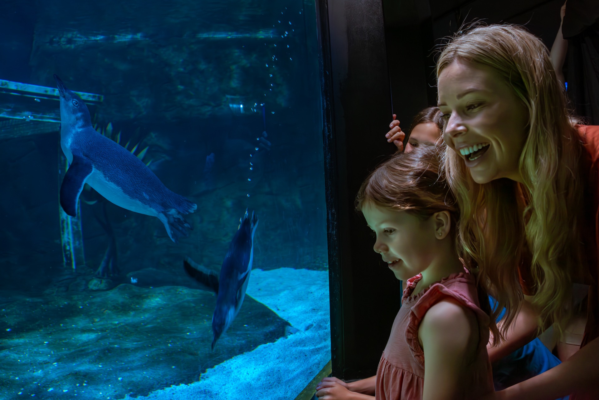 在全新的互动小蓝企鹅区喂企鹅