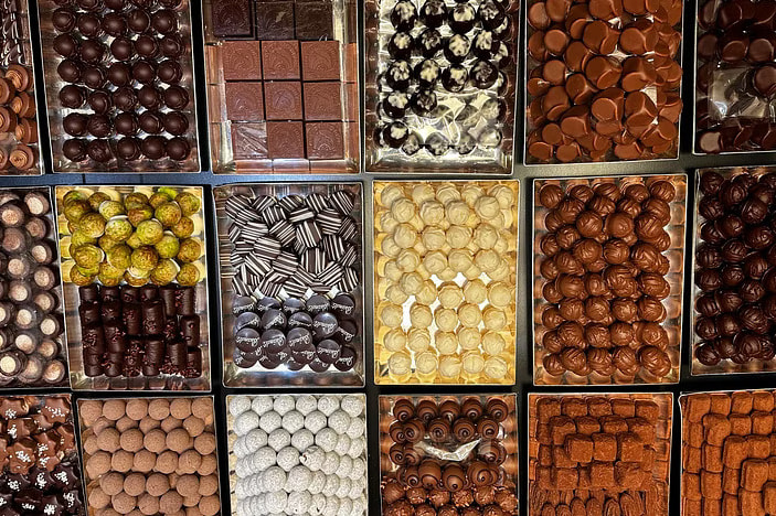 盘子里的各种巧克力