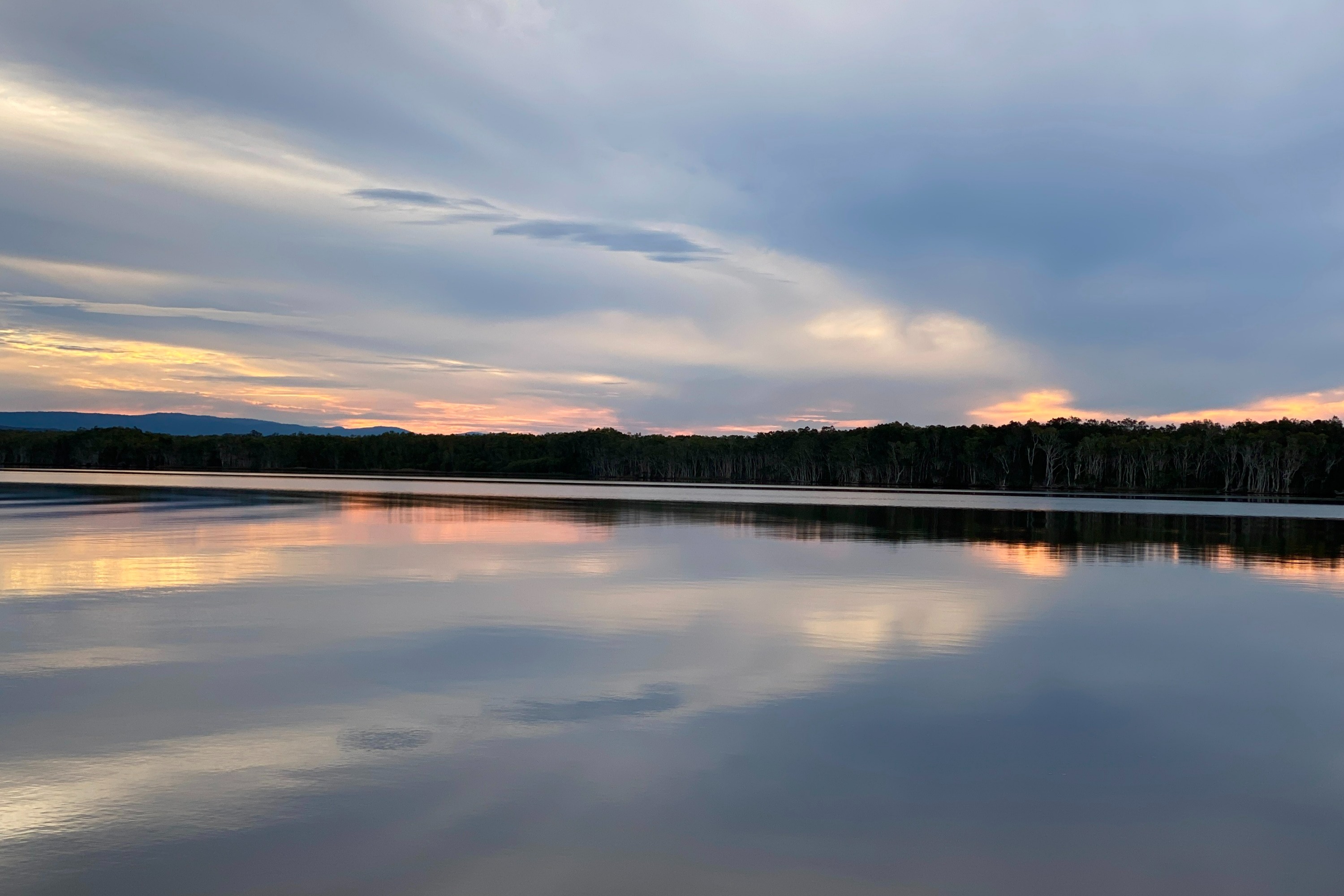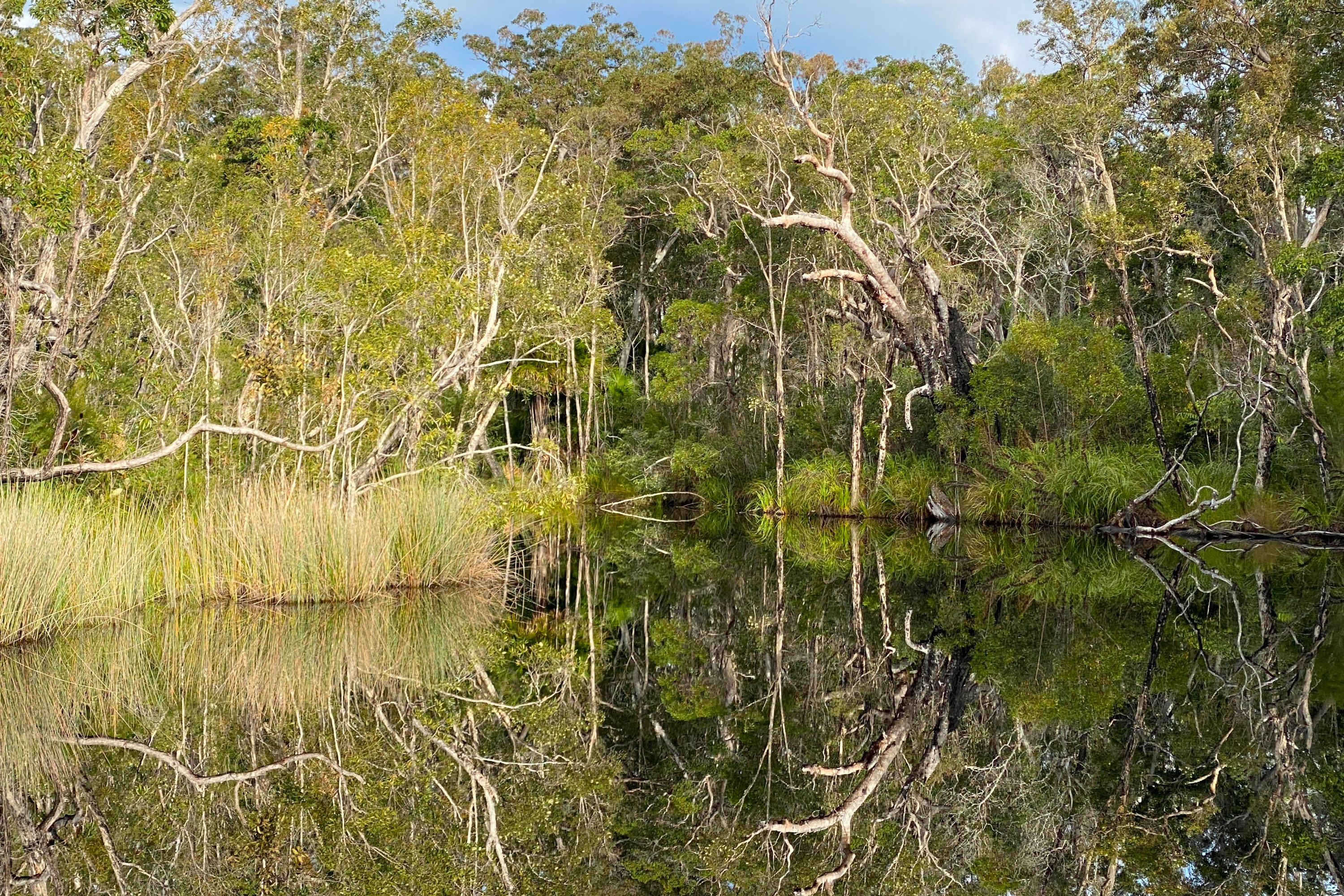 库塔拉巴湖 (Lake Cootharaba) 宁静的湖水倒映着郁郁葱葱的环境,让您远离喧嚣,融入大自然的怀抱