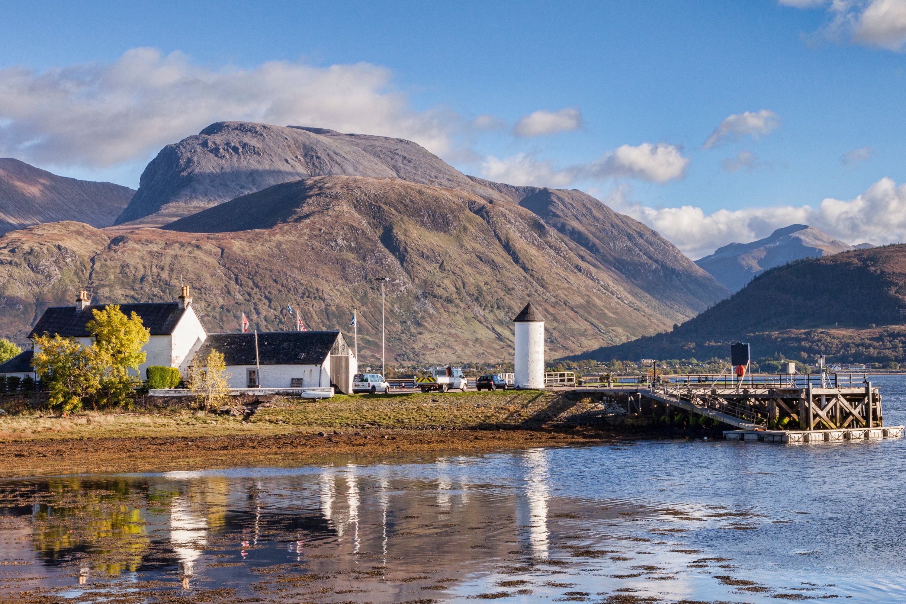 欣赏威廉堡的壮丽景色,欣赏群山与林尼湖宁静的水域交汇之处