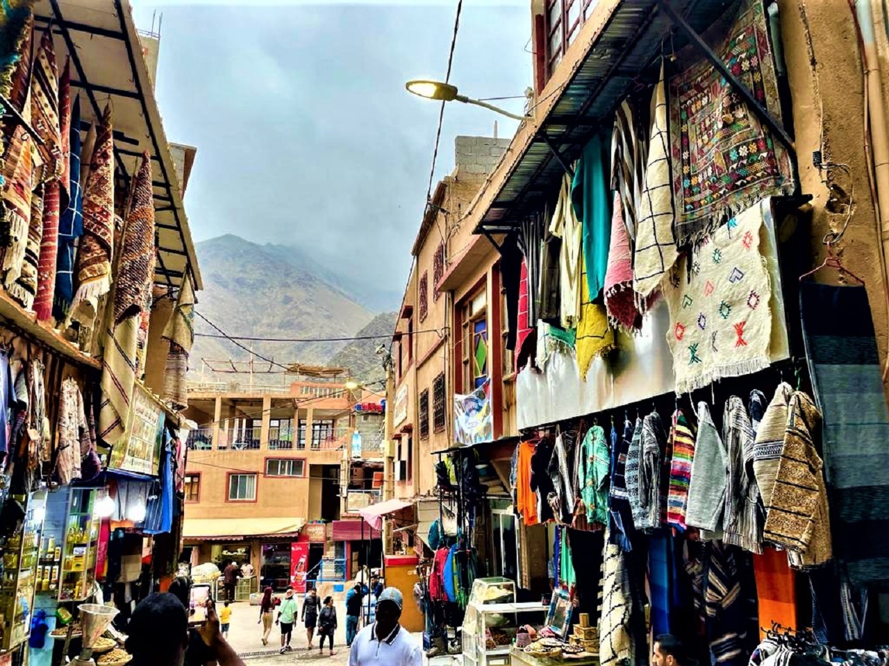 在伊姆利尔受到热烈欢迎,并准备骑一小时的骡子,穿越令人惊叹的伊姆利尔瀑布和小型柏柏尔人定居点。在阿鲁梅停留,欣赏古老的梯田灌溉田的景色,周围种植着樱桃树和核桃树,并欣赏北非最高峰图卜卡勒山 (Jebel Toubkal),海拔超过 4,160 米。