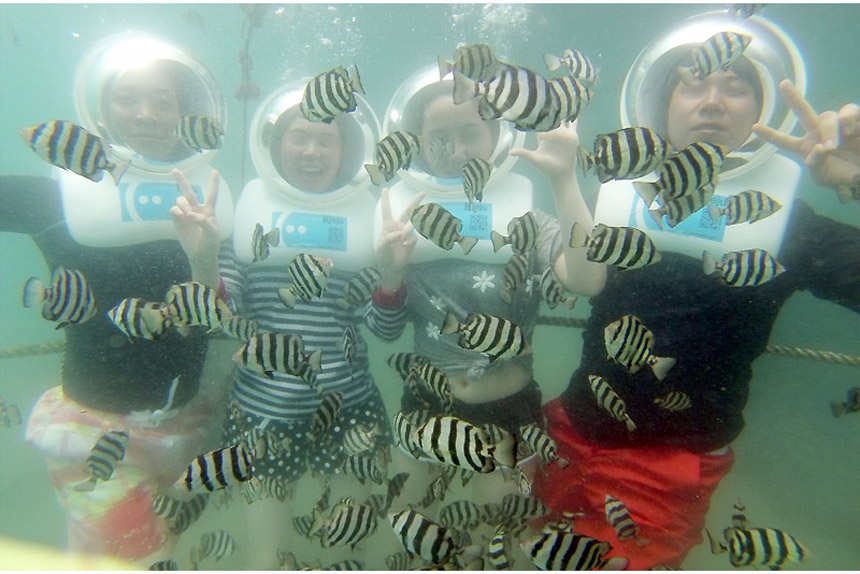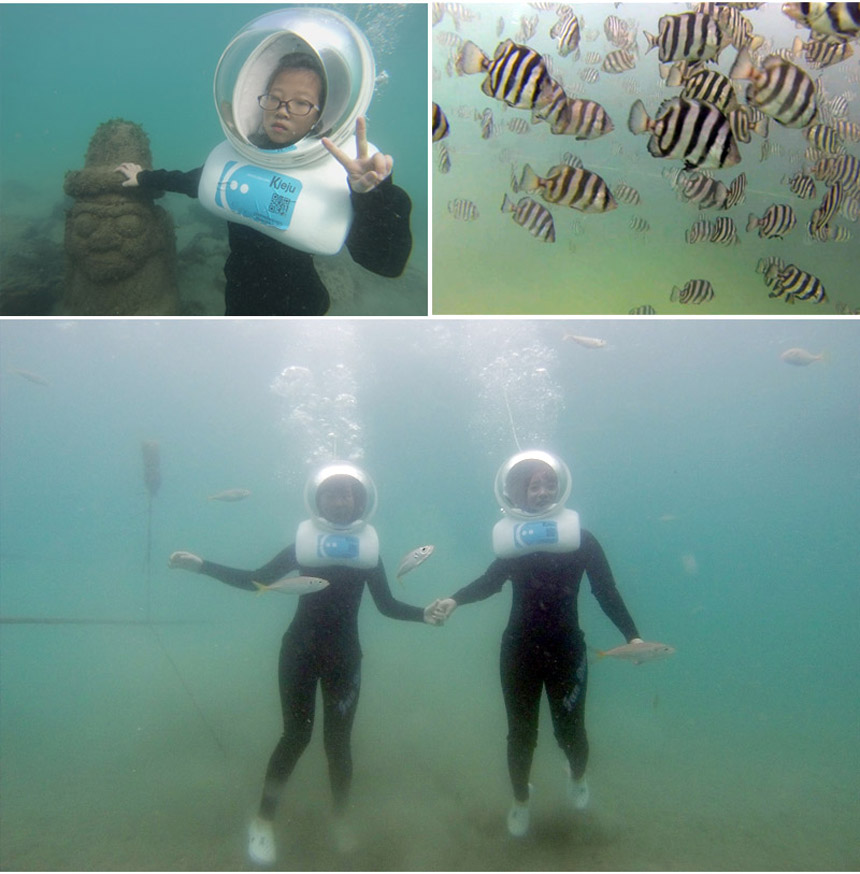 **与旅游景点结合:** 此活动通常与旅游景点结合,在济州岛等海滩地区提供。参与者在潜入海底时可以欣赏到美丽的海景和生态系统。