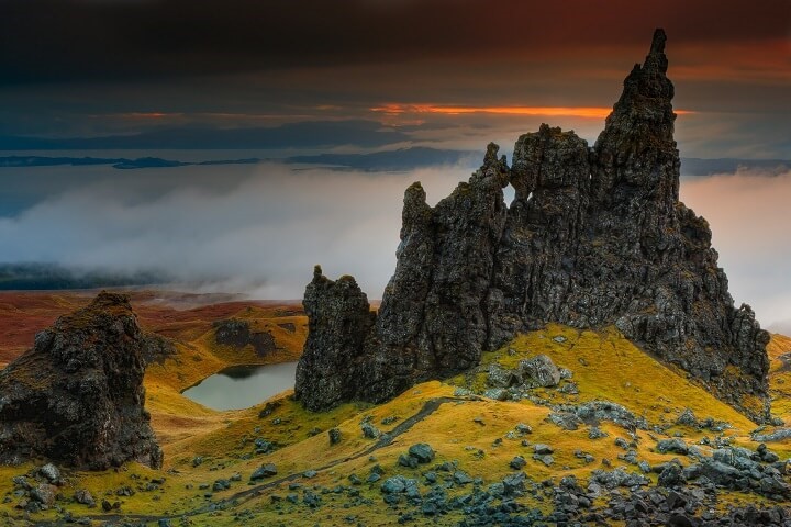 斯托尔老人 (Old Man of Storr) 是斯凯岛的一座引人注目的岩层,是徒步旅行者和摄影师的热门目的地