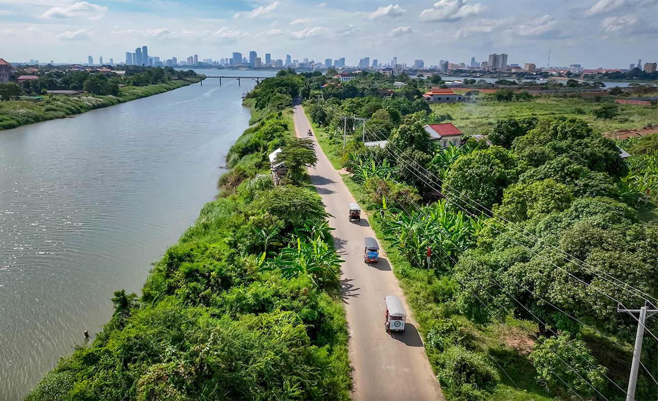 乘坐嘟嘟车游览金边至丝绸岛
