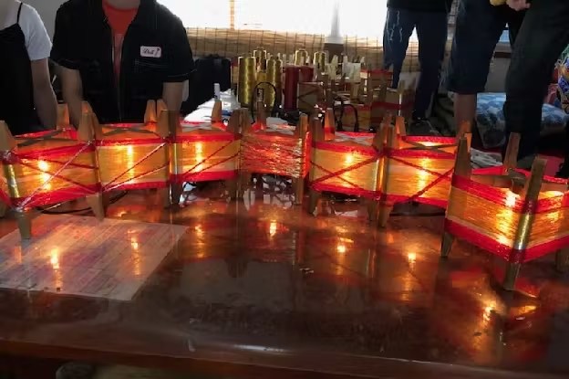 您可以使用江户时代以来一直使用的线,将京都西阵产的用于和服刺绣和腰带的金线随意缠绕在木框上,制作出具有原创设计的安灯。
