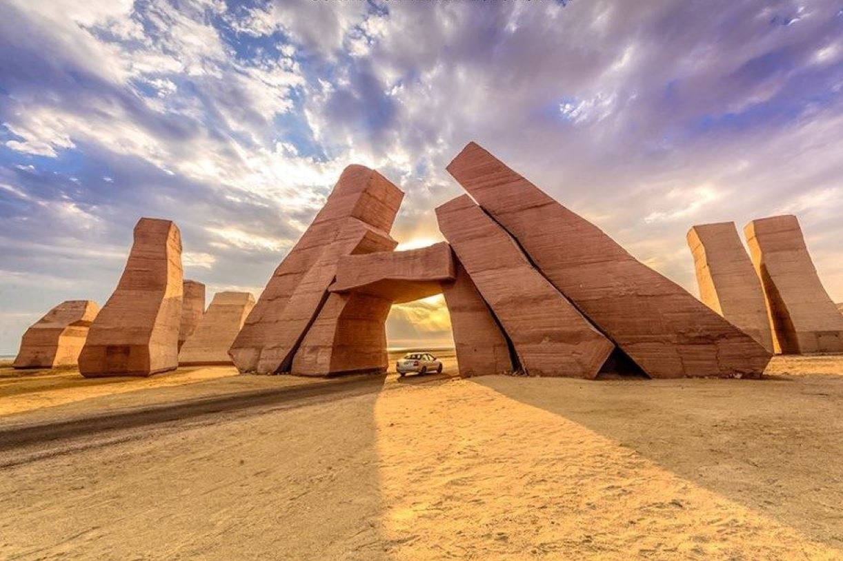 参观标志性的阿拉门,用英语和阿拉伯语拼写