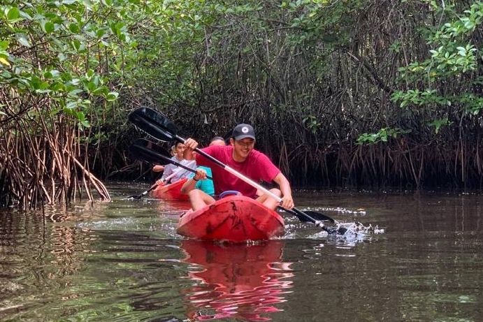 这将是一次旅行,3小时内参观3个浮潜点。旅途中经常会看到蝠鲼。浮潜之旅结束后,享受免费的印尼美食自助午餐,然后享受有趣的红树林皮划艇(包含皮划艇和午餐选项的套餐)。
