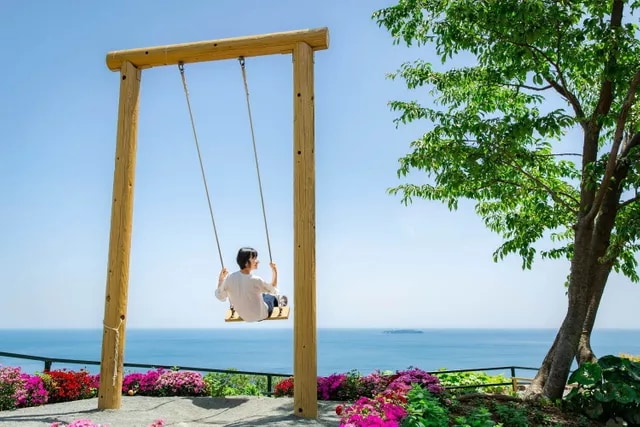 园区内最热门的拍照打卡点,随著秋千摆动,壮阔的海景映入眼帘,仿佛置身天空之中,享受绝美视野与浪漫氛围。