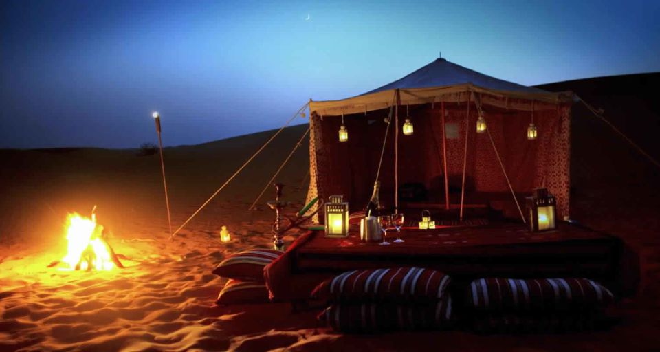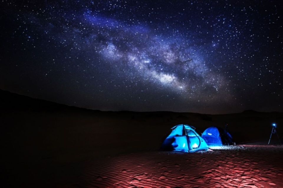 在风景优美的地方停下来拍摄令人惊叹的照片,享受回声效果。继续前往贝都因人村庄,在那里您将享用传统的草药茶、美味的晚餐和令人印象深刻的文化表演。在盛宴和娱乐之后,在繁星点点的夜空下享受宁静的骆驼骑行。