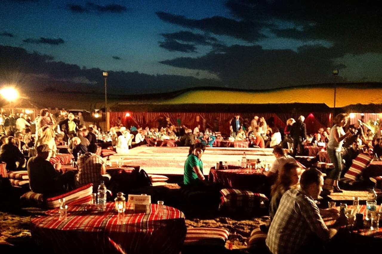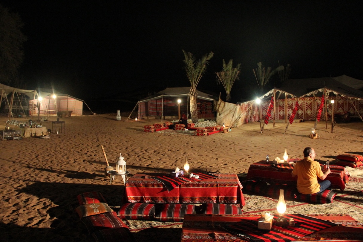 在露天帐篷里吃晚餐