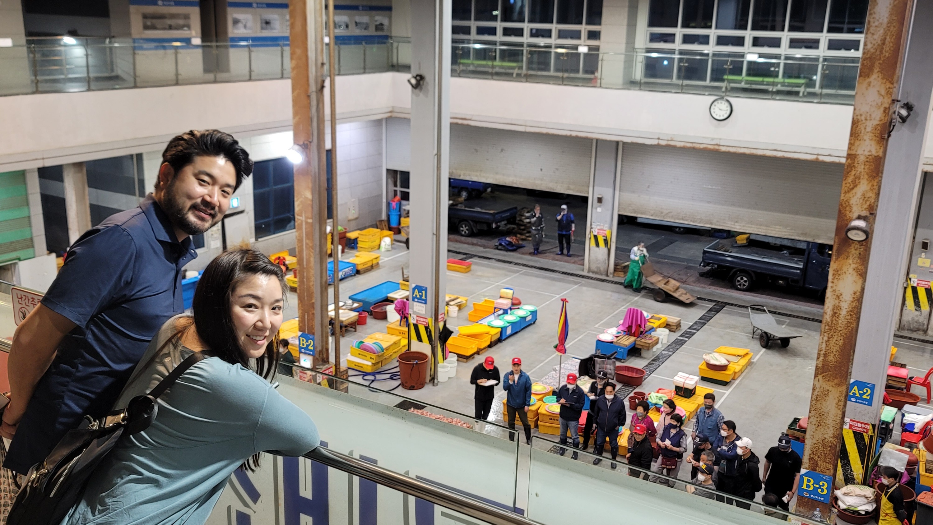 会面后,我们将参观釜山最具代表性的夜市。您可以在夜市品尝正宗的韩国街头小吃。享用完夜宵后,乘坐巴士前往欣赏夜景的地方。在前往目的地的途中,您可以从巴士右侧欣赏釜山港的美丽景色。我们将参观只有当地人知道的夜景景点,欣赏釜山港的夜景。欣赏完夜景,我们穿过半山腰的小巷回到公交车站,欣赏正宗的韩国小巷。拍卖会于晚上22:00开始。在夜间拍卖市场您将能够看到正宗的当地鱼类。拍卖市场可以拍照,但不可以录像。