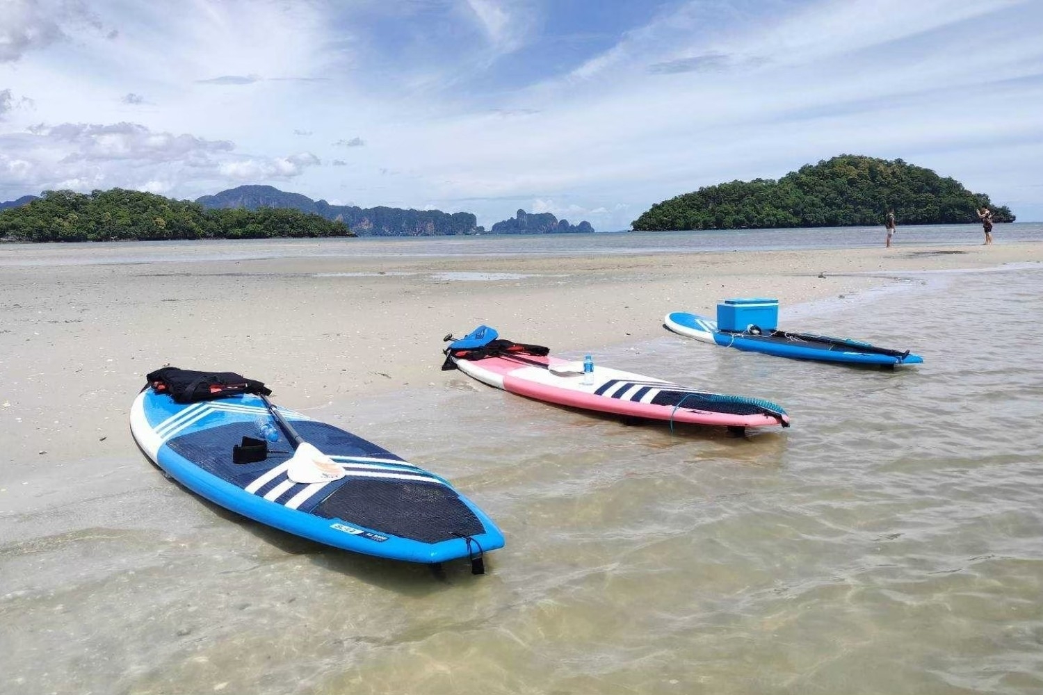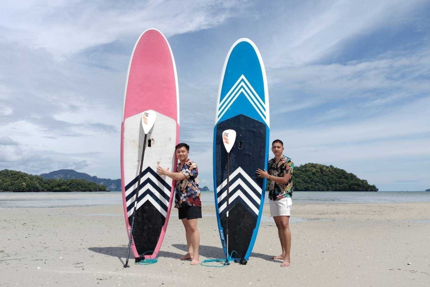 享受三项精彩套餐,体验奥南立式单桨冲浪 (SUP) 的纯粹乐趣!您可以选择日出或日落时分的半日探险活动,或参加全日活动,探索甲米的自然美景。划船穿过宁静的红树林,参观海星海滩,并在 Hang Nak 海滩放松身心。让阳光照在您身上,捕捉美丽的回忆并享受宁静的放松。这里充满乐趣、自然和令人难忘的照片!