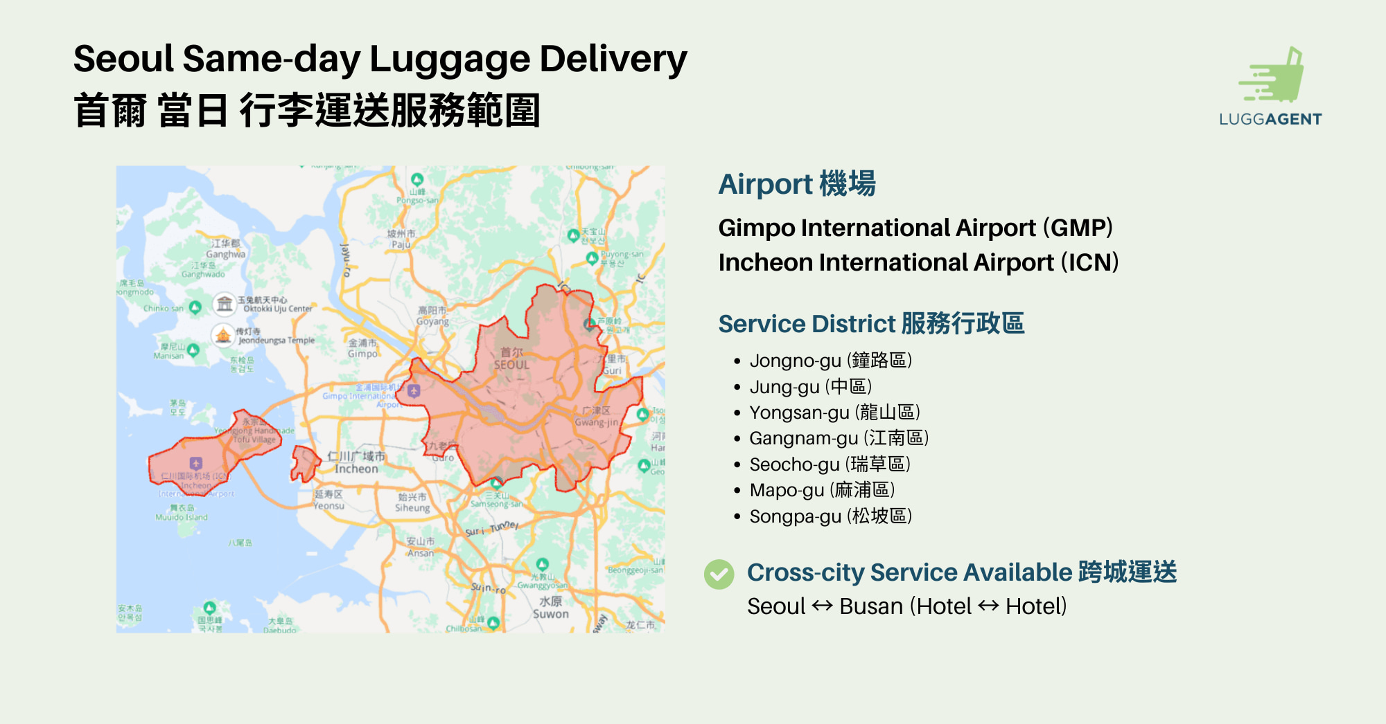 首尔行李运送服务(往/返首尔机场/市区)- LuggAgent 提供