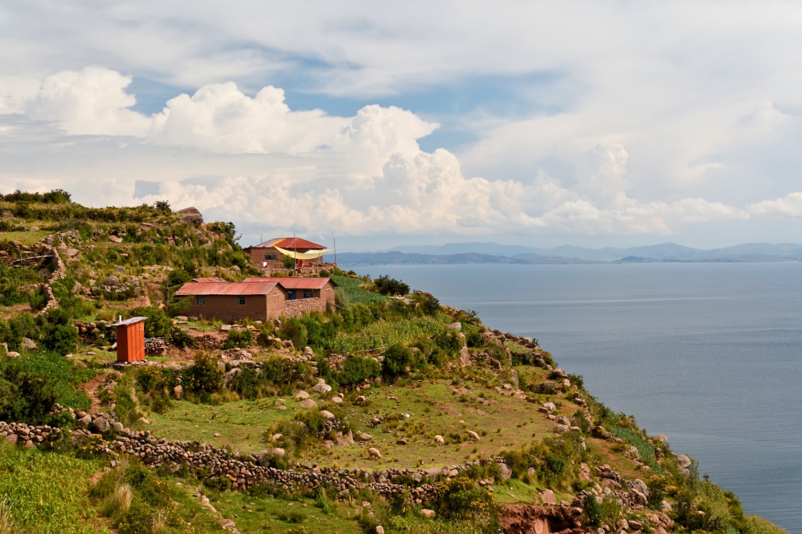 在岛顶享用一顿丰盛的午餐,欣赏的的喀喀湖的全景。