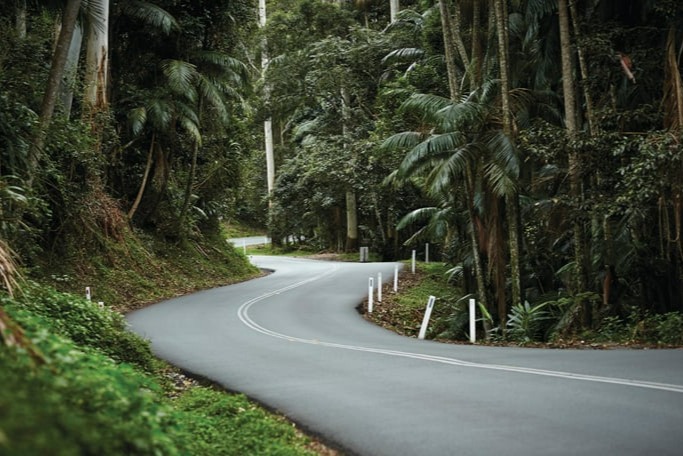 沿着风景如画的山路蜿蜒穿过风景如画的腹地