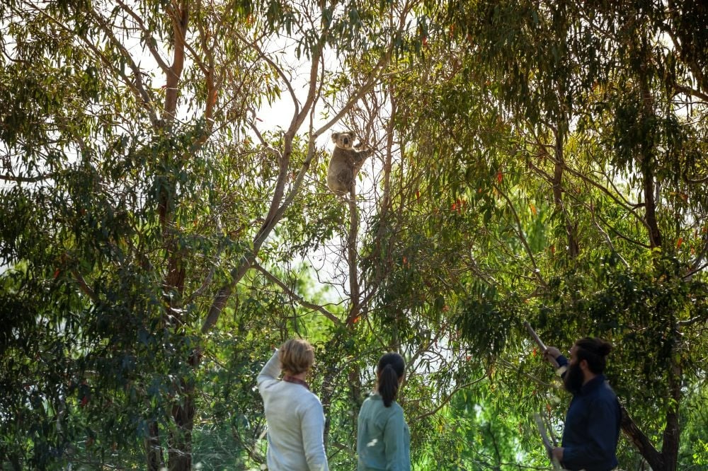 在坦伯林山 (Tamborine Mountain) 探险期间,亲眼目睹考拉优雅地依偎在树梢上