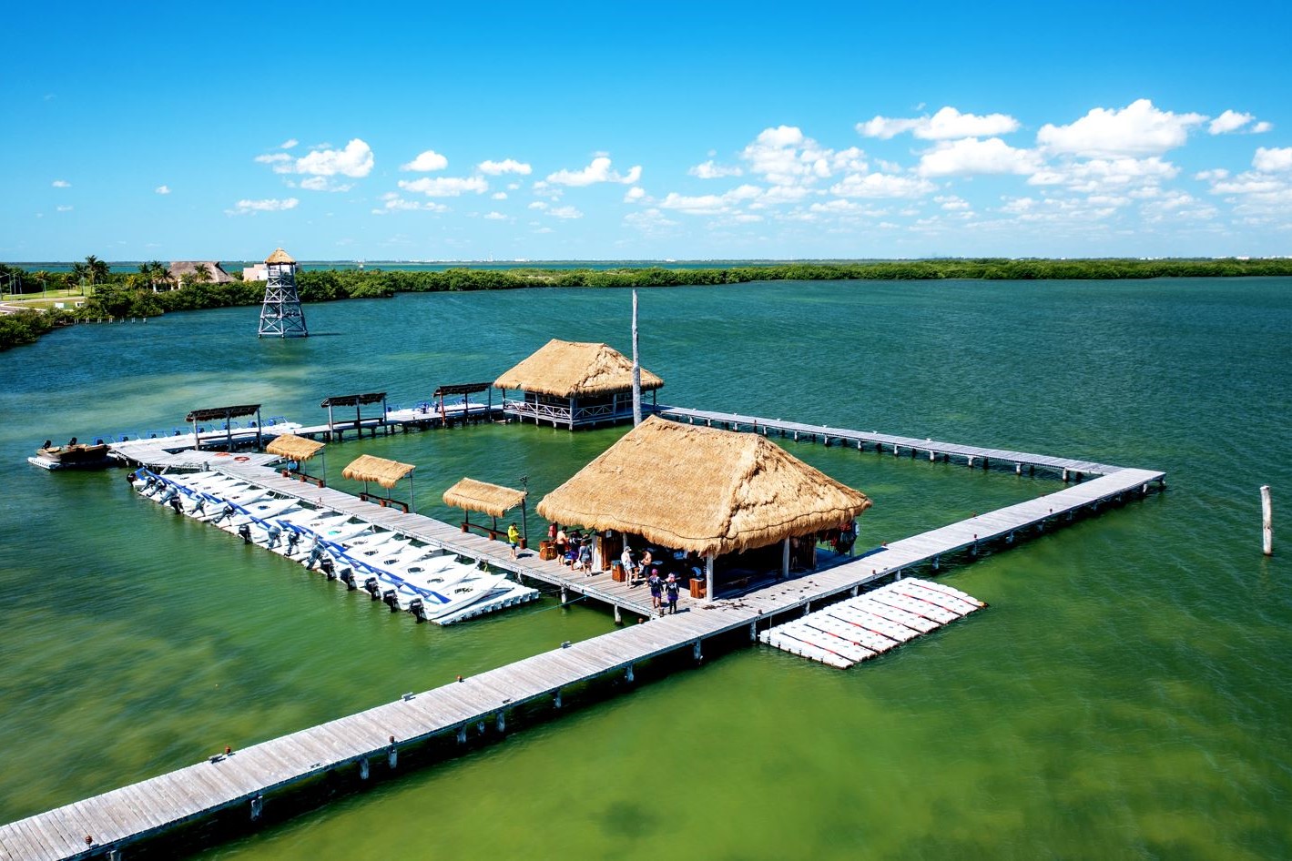 登上快艇,驾驶自己的船穿过 Nichupté 泻湖的红树林美景,潜入珊瑚礁深处,在五颜六色的鱼群中浮潜,探索海洋世界。您会惊叹于巨大珊瑚礁的形状和形式!在结束冒险之前,在这个独特的环境中,享用美味的玛雅小吃和新鲜的天然水。