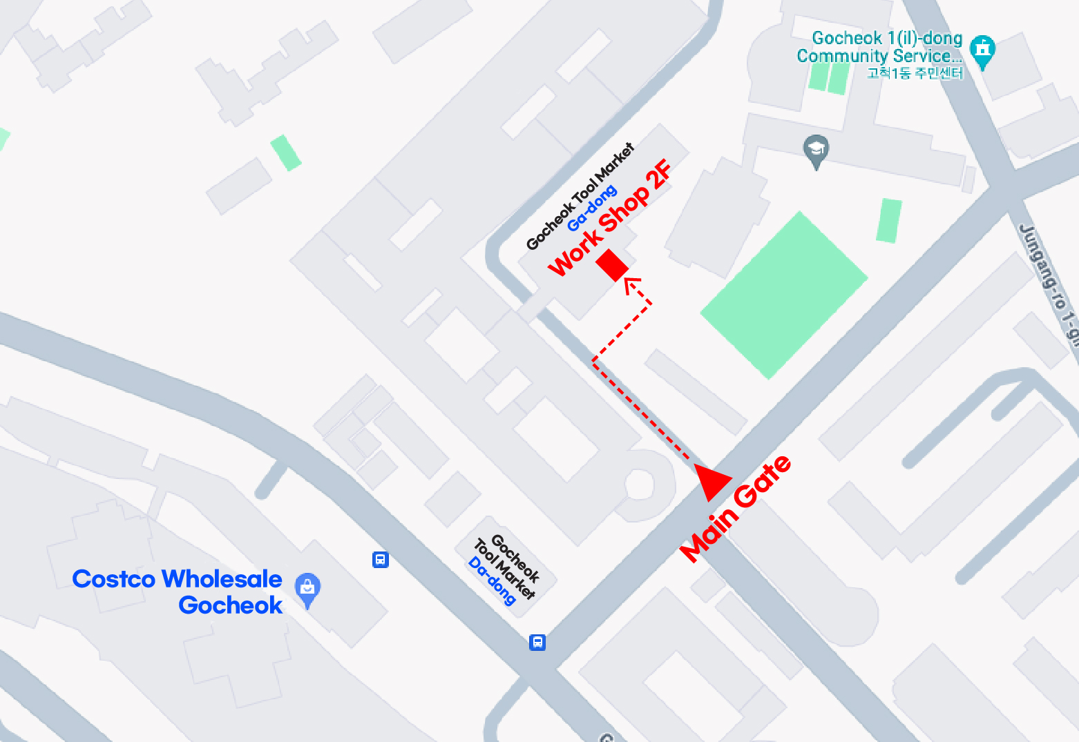 到达正门后,您会看到眼前的建筑物。车间位于二楼。您可以使用车间下方的楼梯。