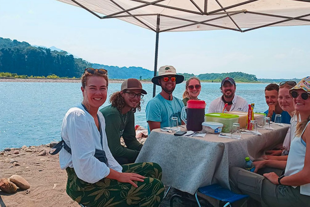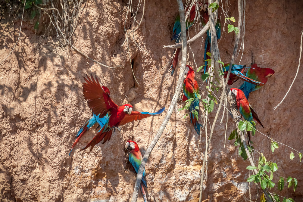 **第 2 天:**早早出发前往 Macaw Clay Lick 观赏色彩缤纷的鹦鹉和金刚鹦鹉。早餐后,我们徒步旅行、享用午餐、享受河流漂流、参观土著社区,并以篝火晚餐结束一天。