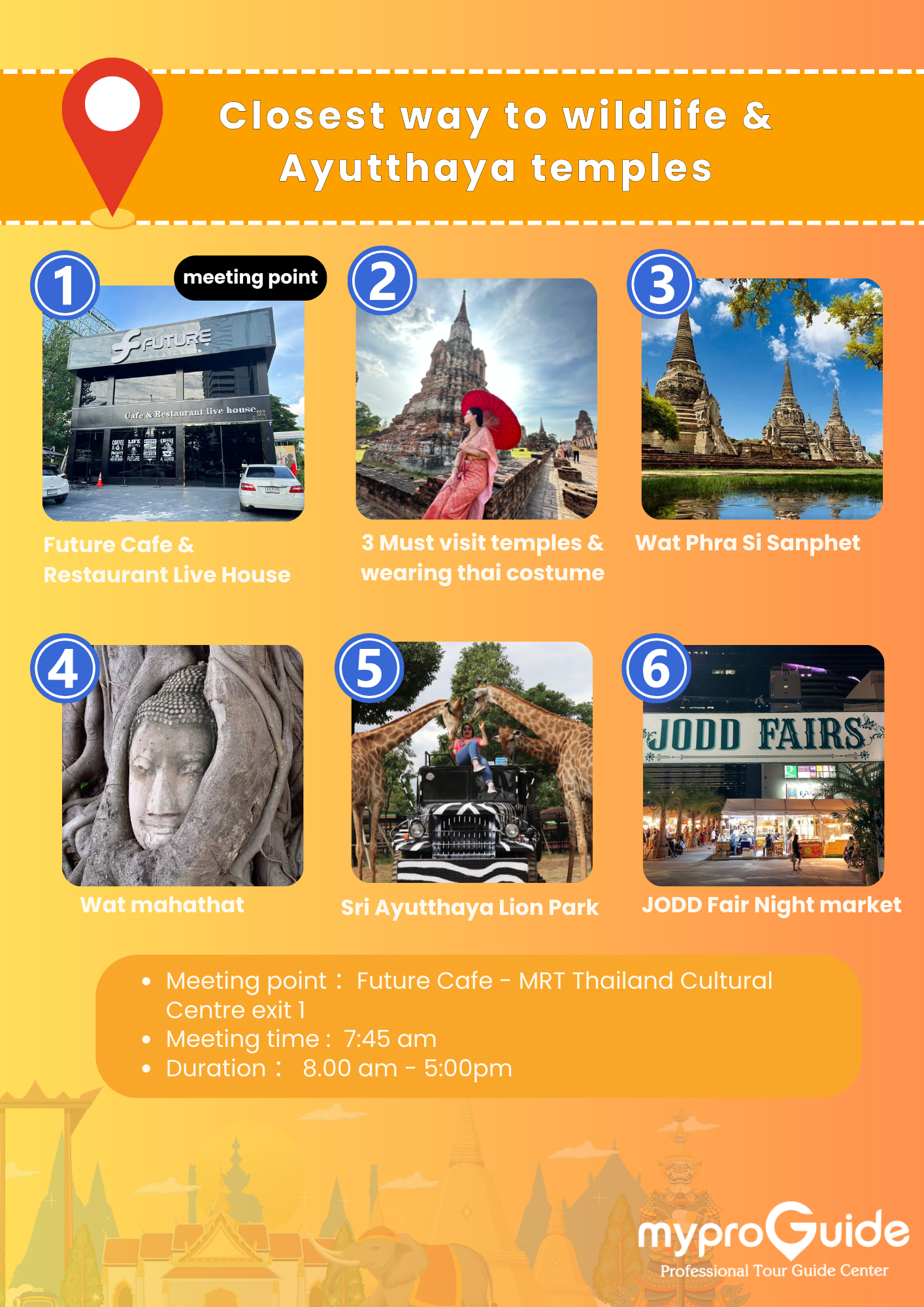 (免费 eSIM)大城府新动物园、必看寺庙和泰国服饰
