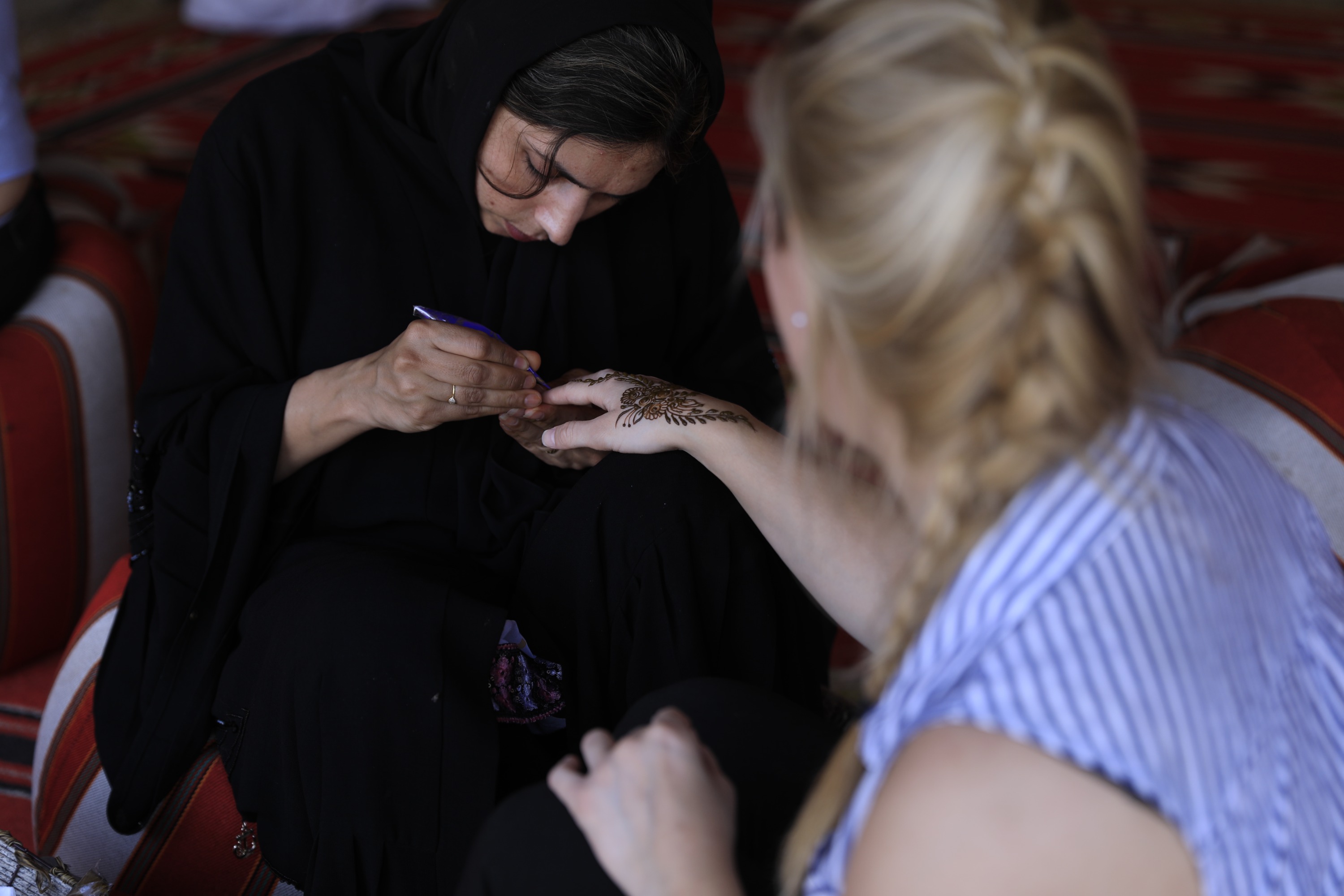 选择 6 小时的夜间旅游,乘坐越野车后,前往 Al Khayma 营地。享受骑骆驼、猎鹰照片、水烟、指甲花纹身和烧烤晚餐。之后我们会将您送至您的酒店或首选地点。
