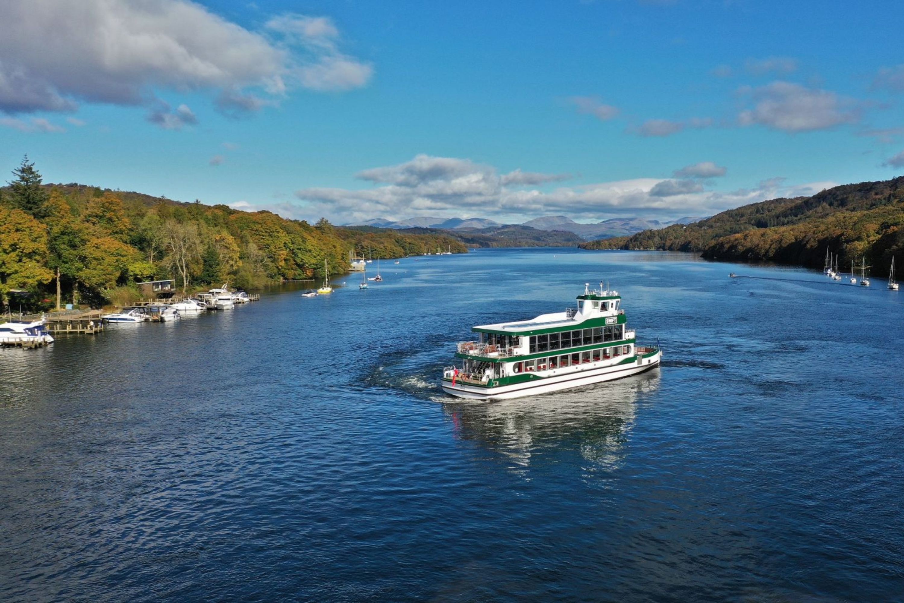 当您巡游温德米尔平静的水域时,欣赏宁静的风景