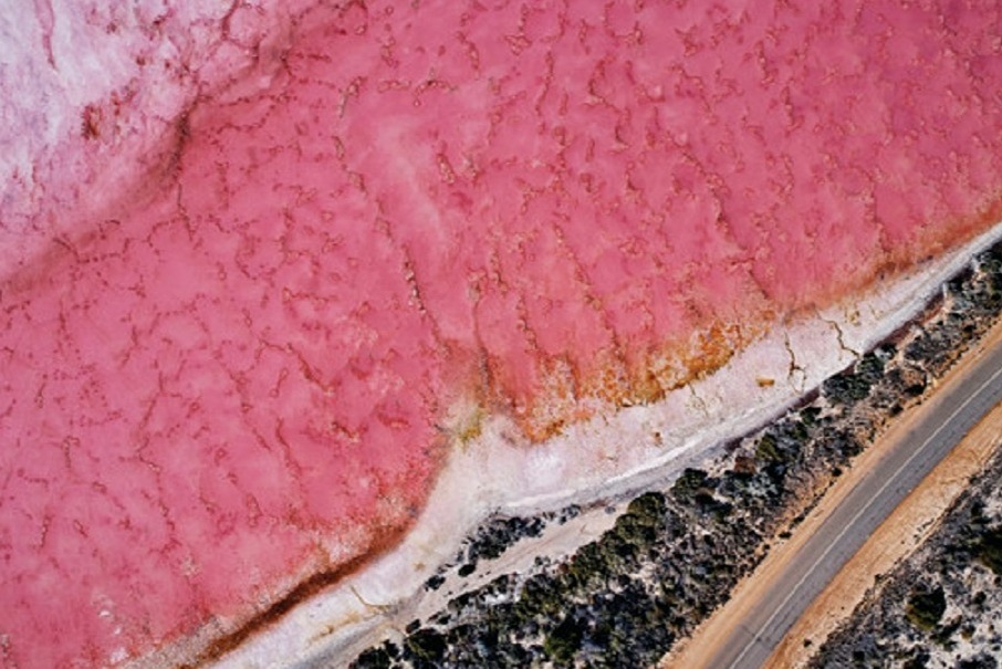 沿着赫特潟湖 (Hutt Lagoon) 海岸悠闲漫步,让充满活力的粉红色湖影让您着迷