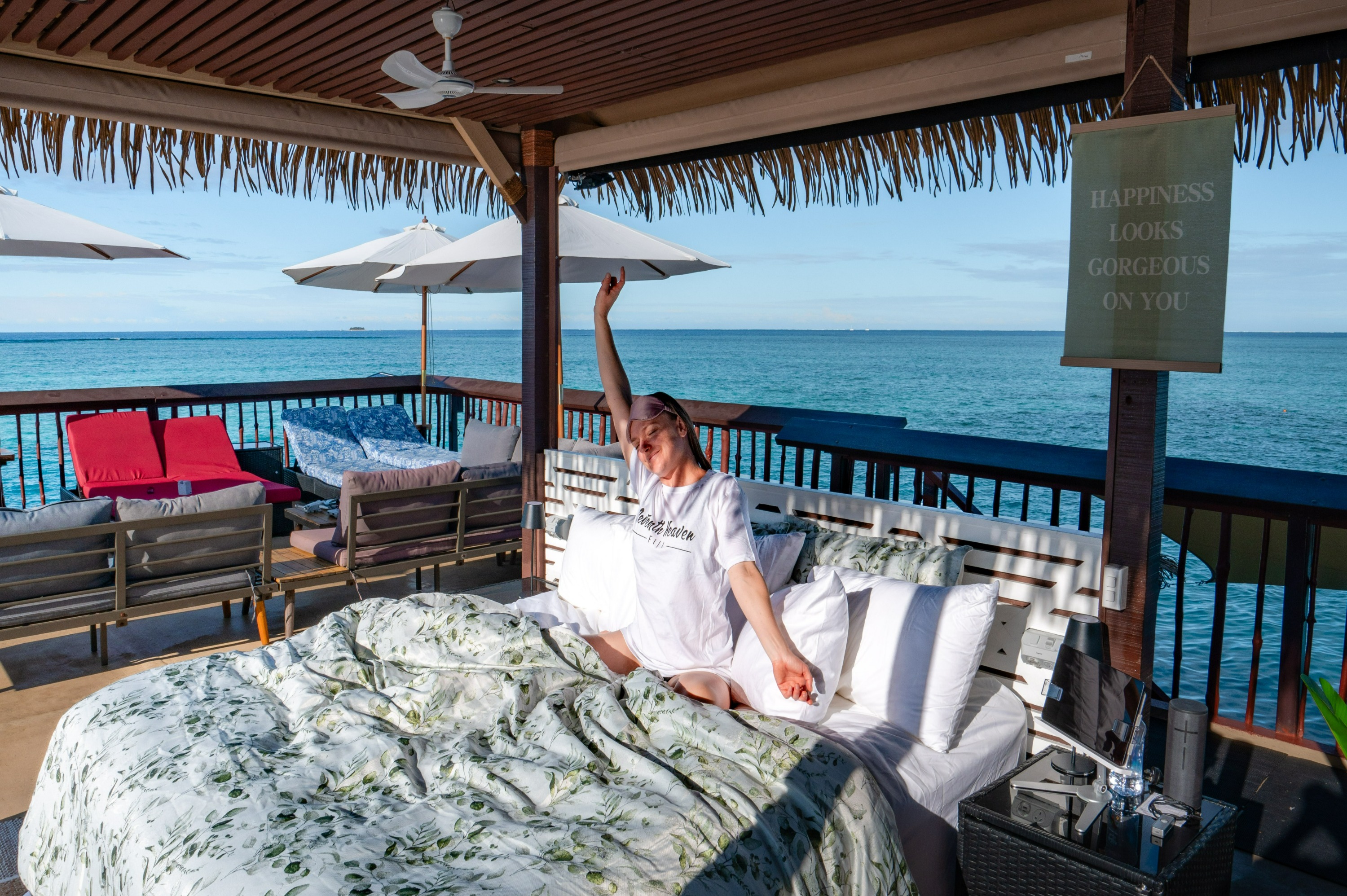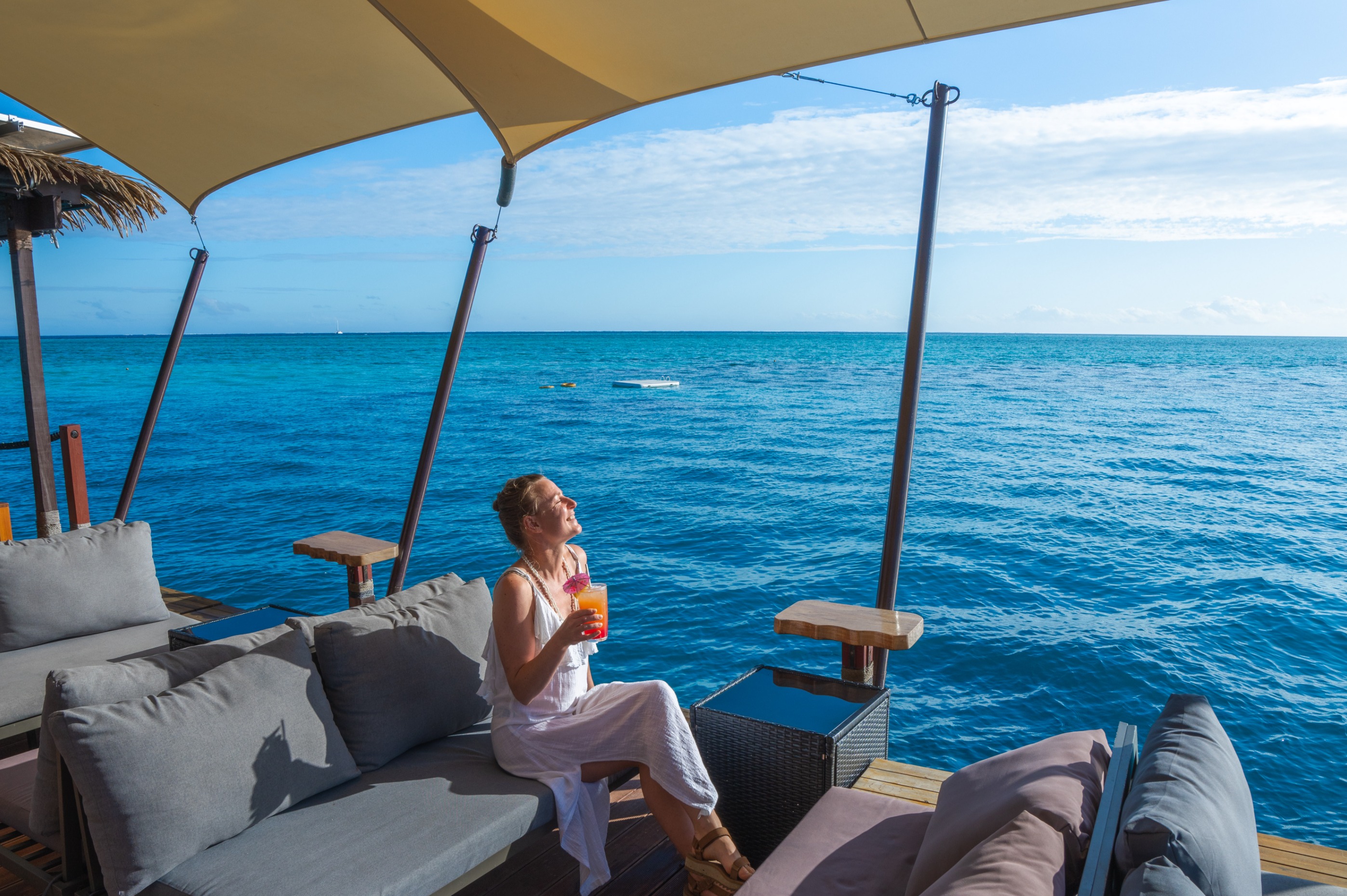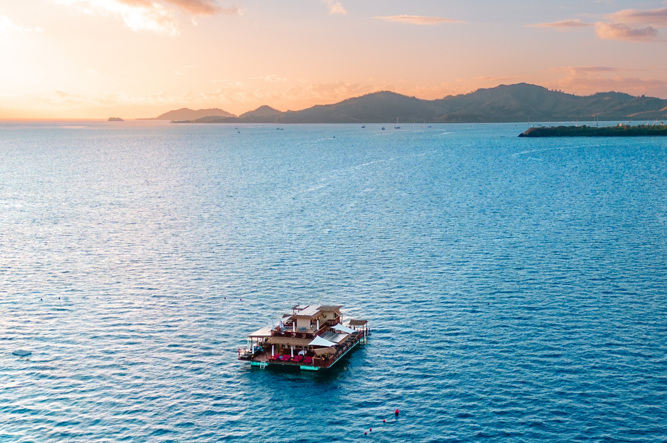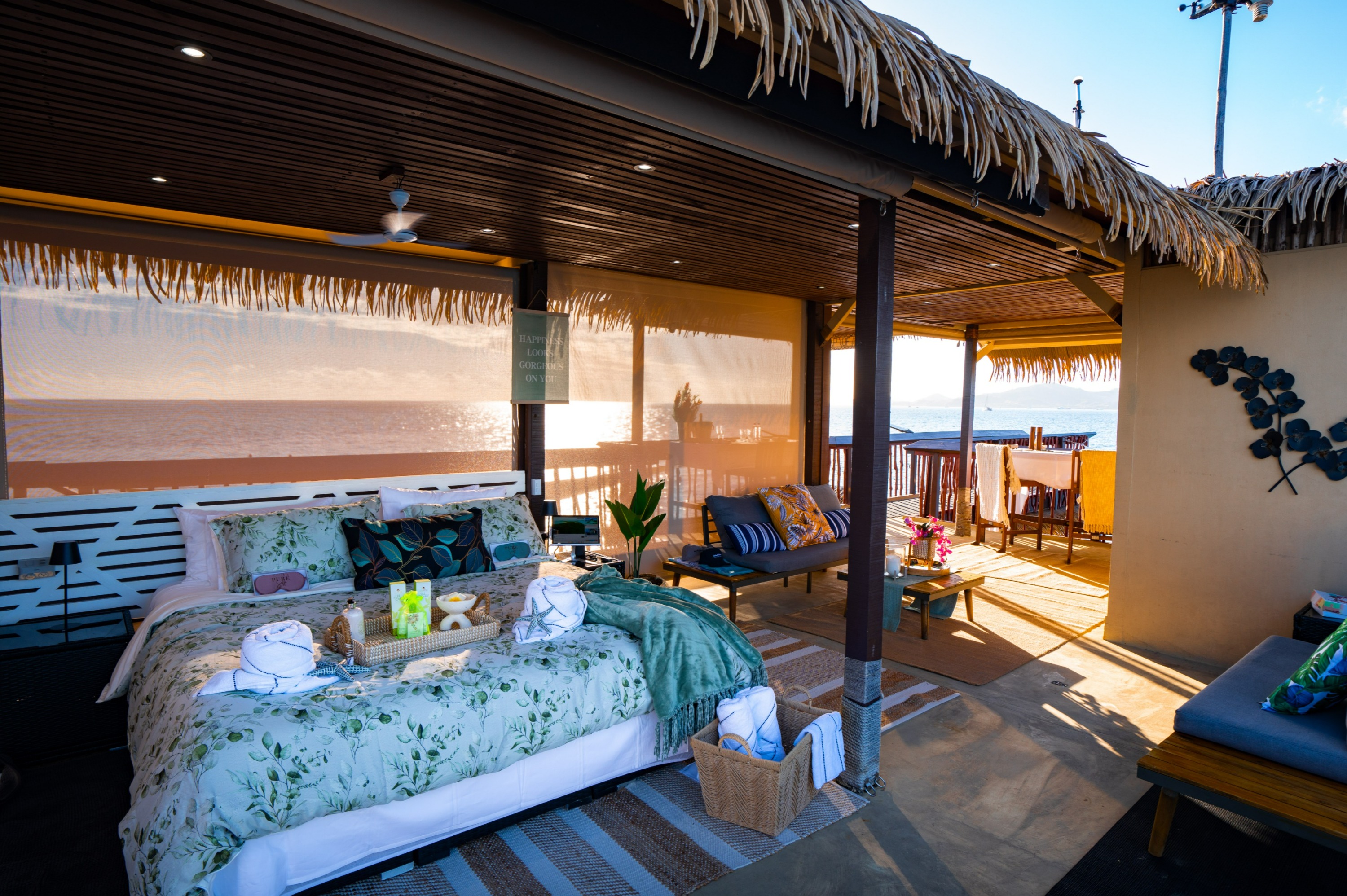 在斐济第七天堂的独特水上平房中放松身心,欣赏太平洋全景,营造出宁静的度假氛围