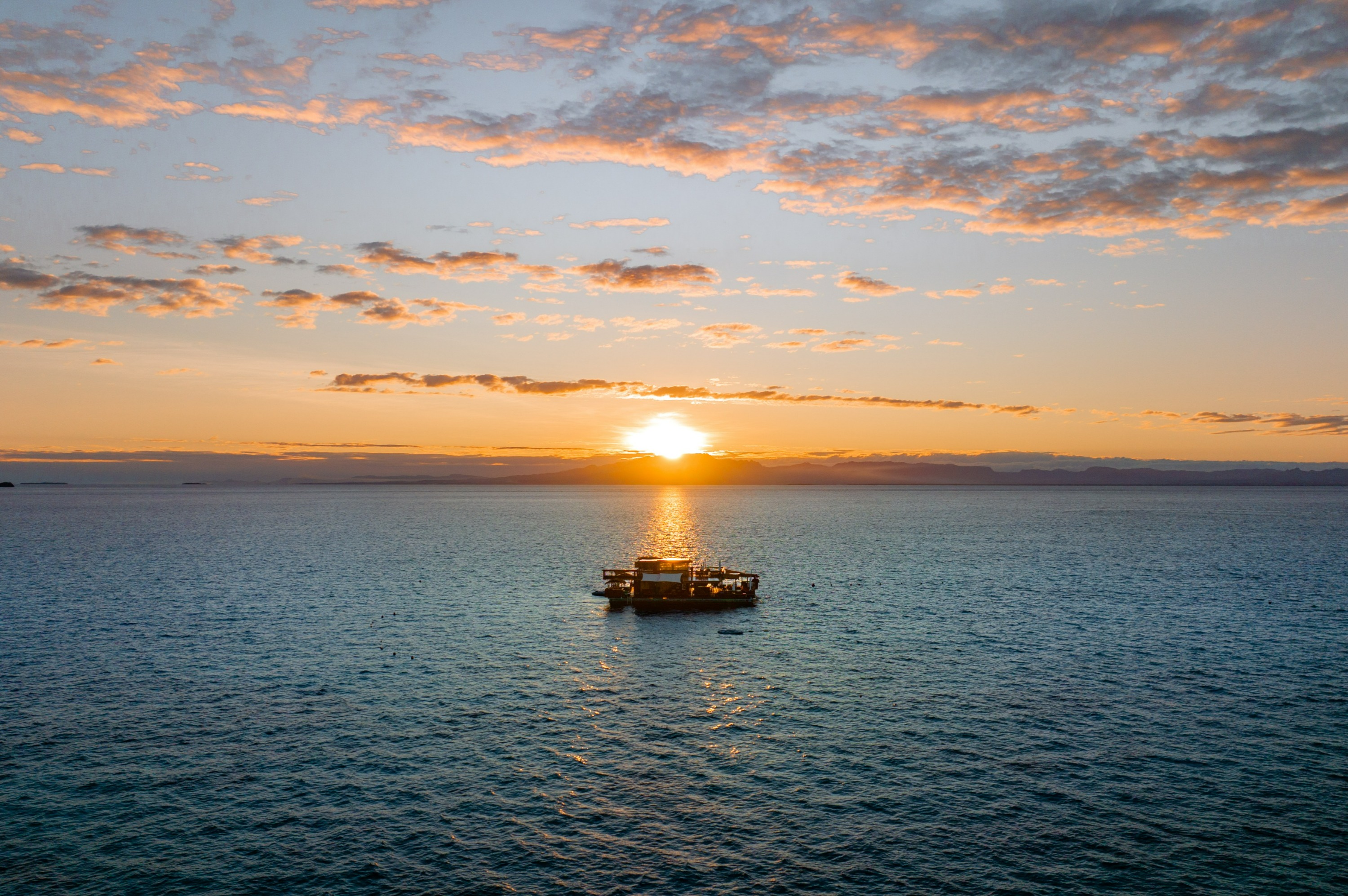 见证太阳优雅的落日,为塔维瓦岛宁静的海岸投下温暖的色彩
