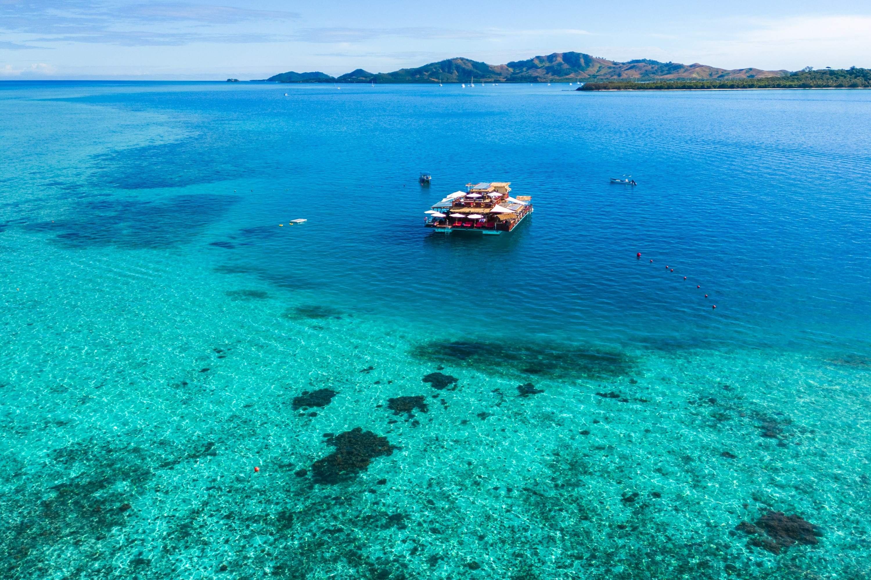 乘船踏上风景优美的旅程,增强到达斐济独特天堂第七天堂的冒险之旅