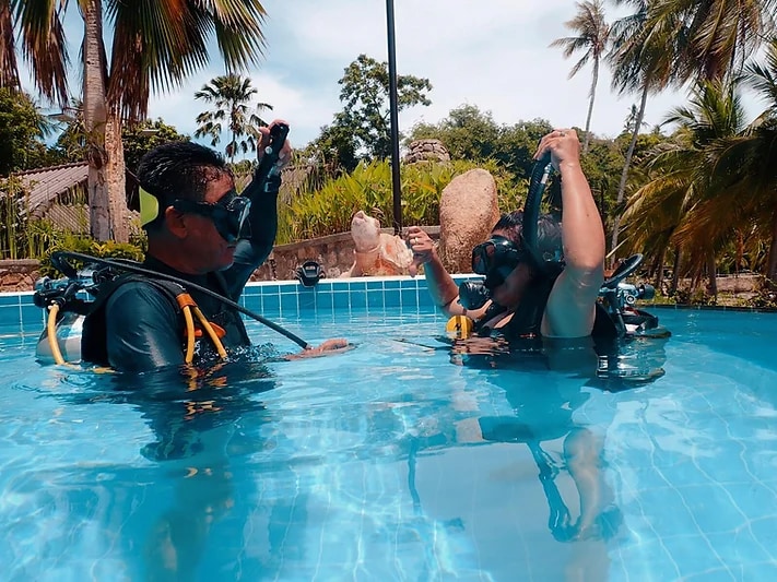 在春蓬参加一次泳池课程,深入了解基础知识——在受控且舒适的环境中引导探索水肺潜水技术