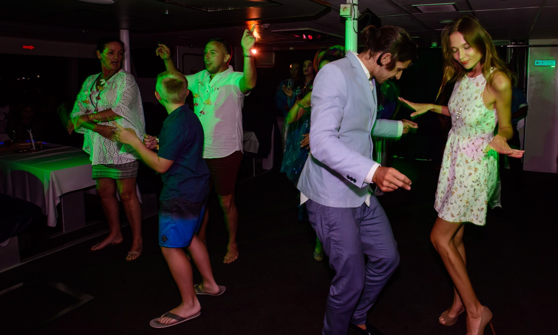 当您乘坐豪华的 Bali Hai II 双体船沿着海港漂浮时,沐浴在夕阳的余晖中,天空变成美丽的橙色、紫色和红色。宏伟的船只、波光粼粼的海水和橙色的天空为捕捉浪漫场景创造了完美的拍照机会。夜幕降临时,享用美味的自助晚餐,欣赏现场音乐表演。开放式舞池和现场歌舞表演定会让您度过一个难忘的夜晚。