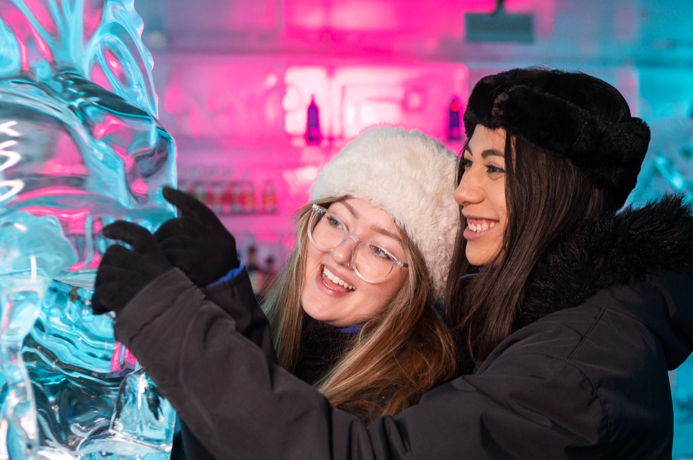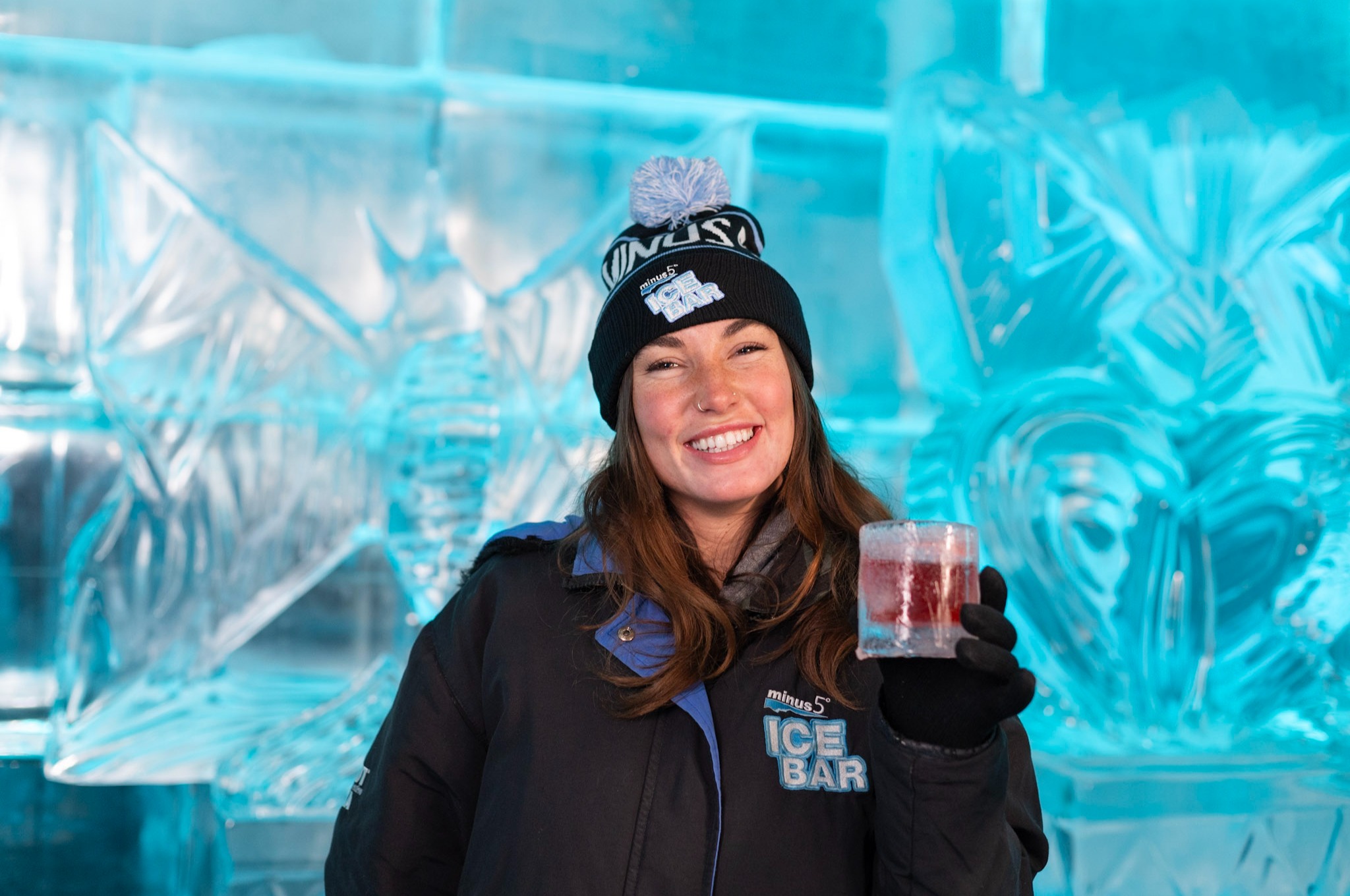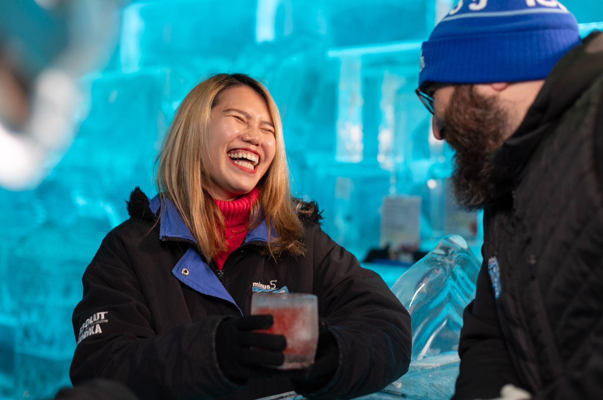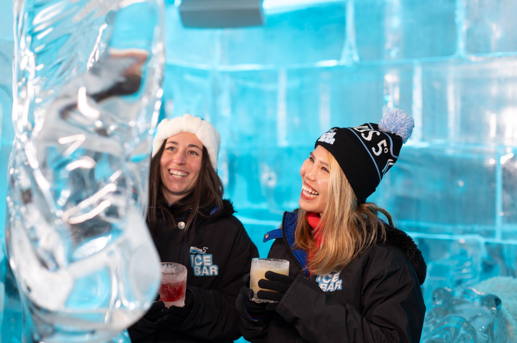 Enjoying frosty cocktails in a stunning ice-carved setting at Minus 5° Ice Bar