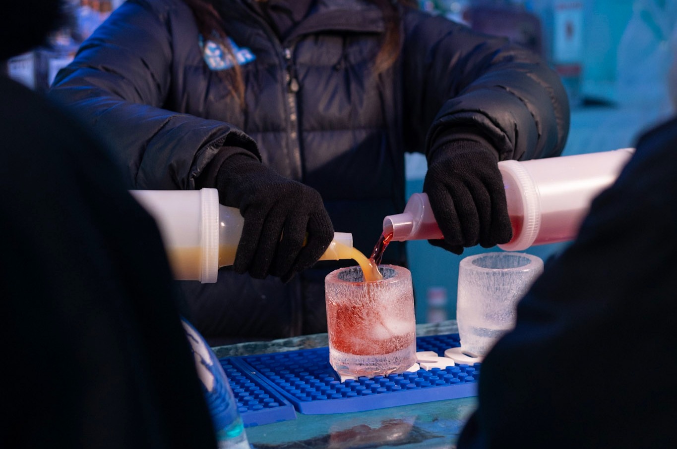 Skillfully concocting expert cocktails with precision and flair in the immersive setting of Minus 5° Ice Bar