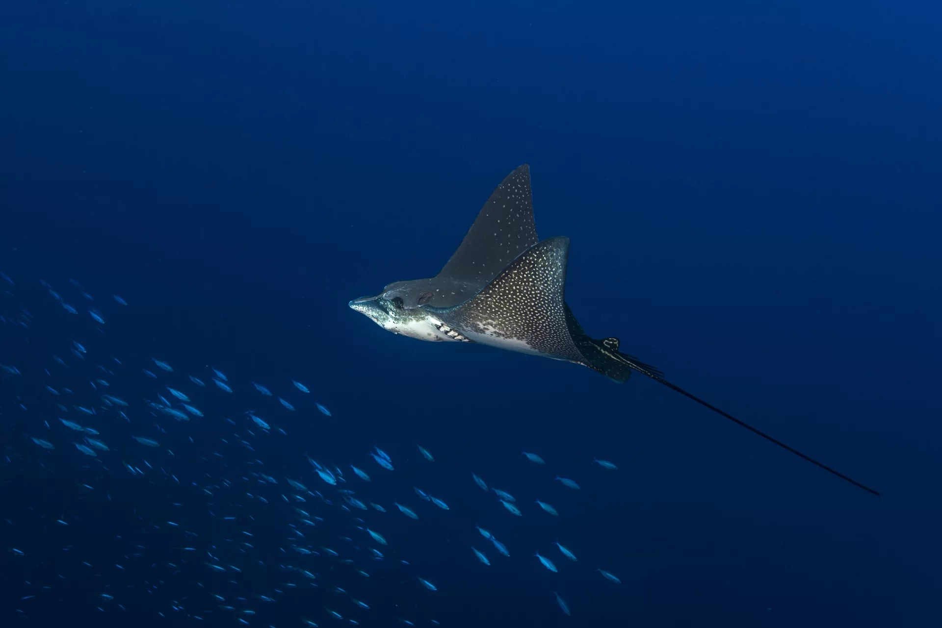 邂逅雄伟的鹰鳐,它们在卡瓦延蔚蓝的海水中优雅地翱翔,为您的潜水体验增添一丝惊奇