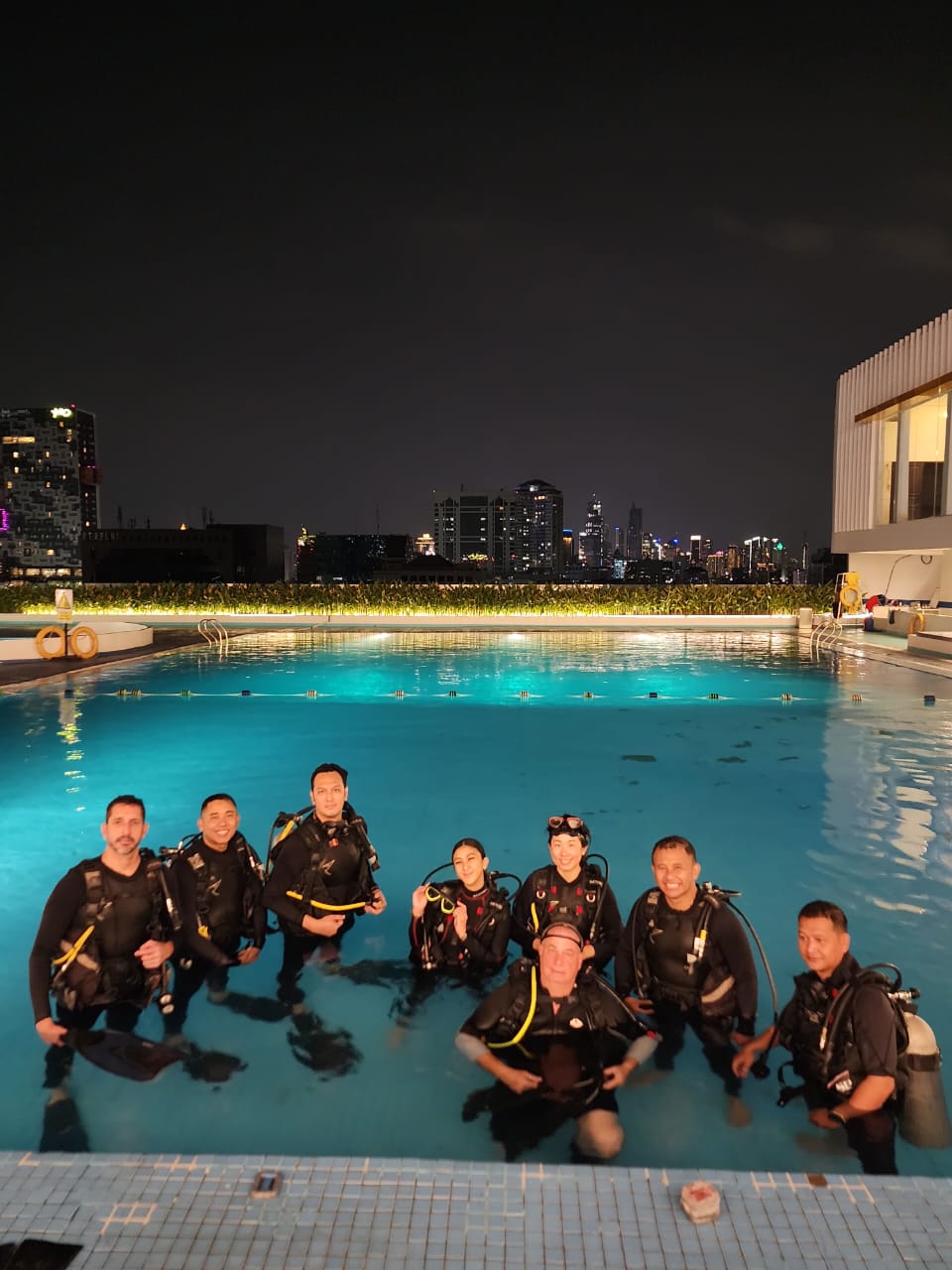 在雅加达的泳池课程中体验城市天际线景观和水下探索的独特融合,为您的水肺潜水训练增添难忘的体验